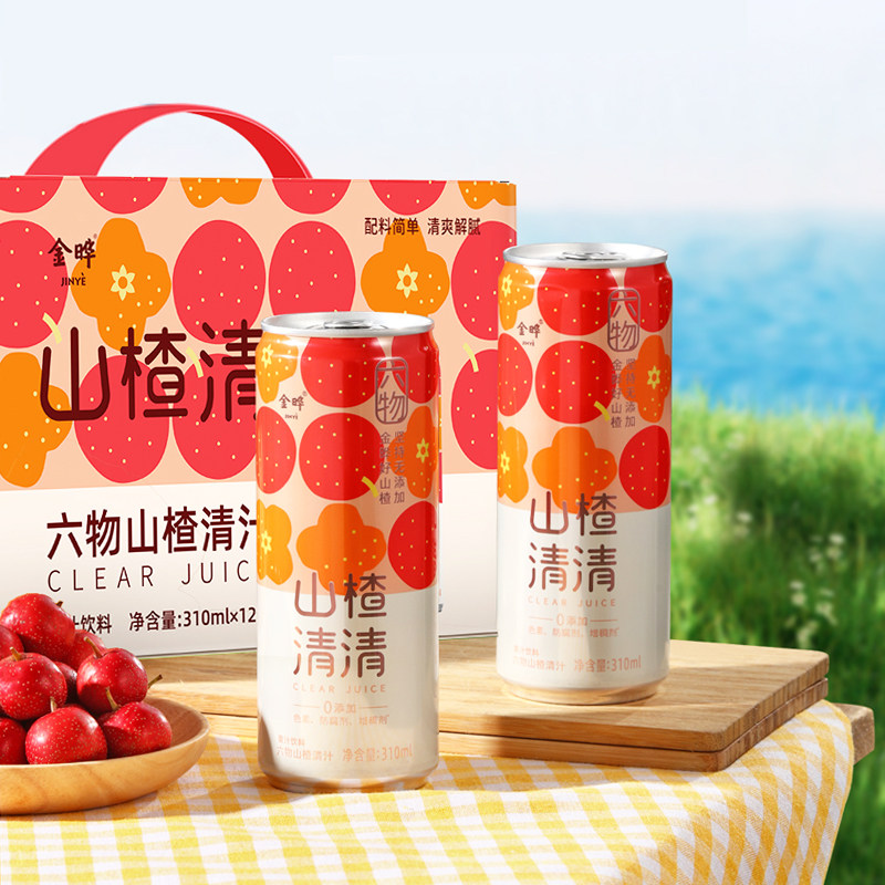📚 金晔山楂清清六物开胃饮料310ml*12罐解腻无添加果汁山姆礼盒