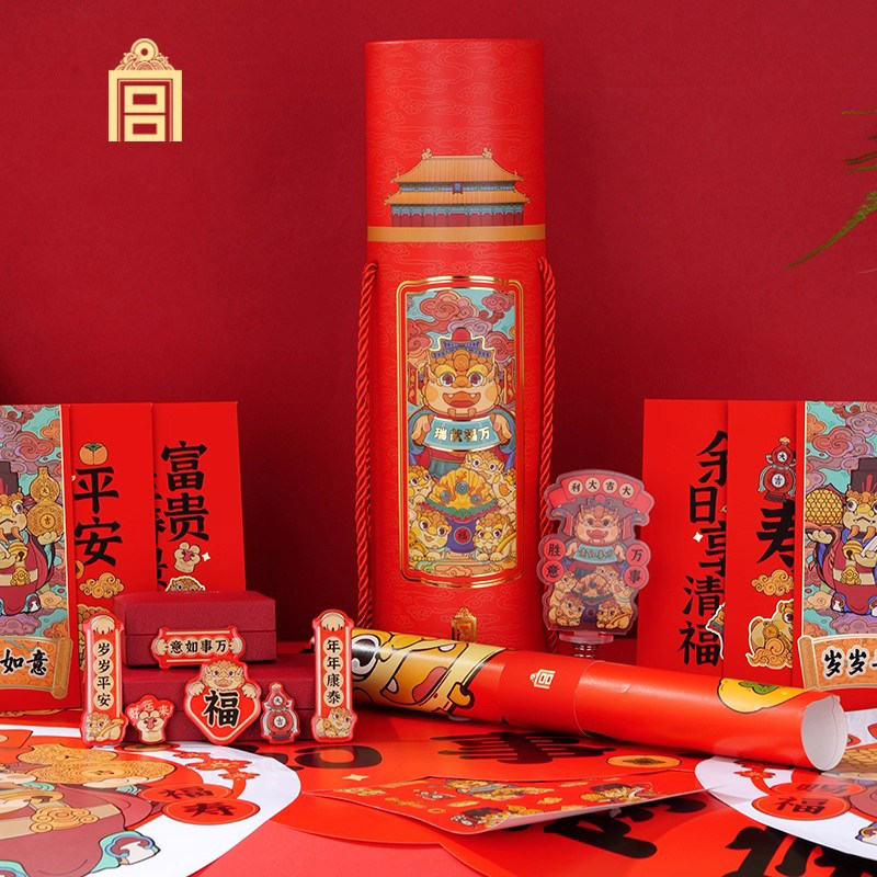 📚 故宫文创万福献瑞瑞狮新春套装2026新款春联礼盒对联礼盒窗花红包