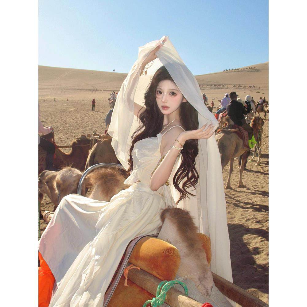 📚 埃及迪拜青海沙漠旅游穿搭棉麻红色纱巾女丝巾防晒披肩包头巾围巾