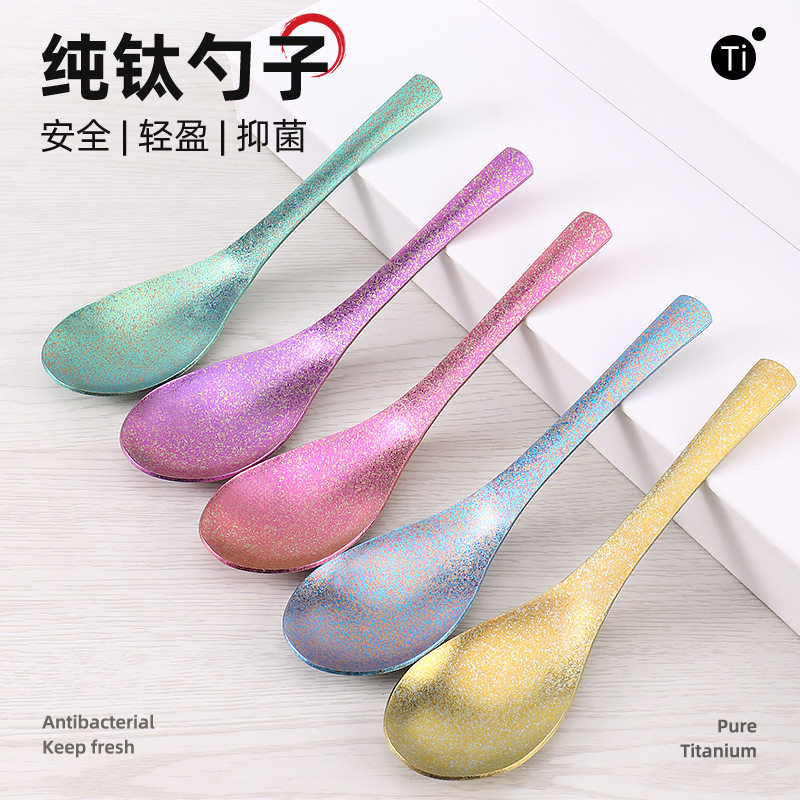 📚 纯钛勺子家用防摔汤勺成人儿童吃饭钛勺子便携式餐具儿童辅食勺子