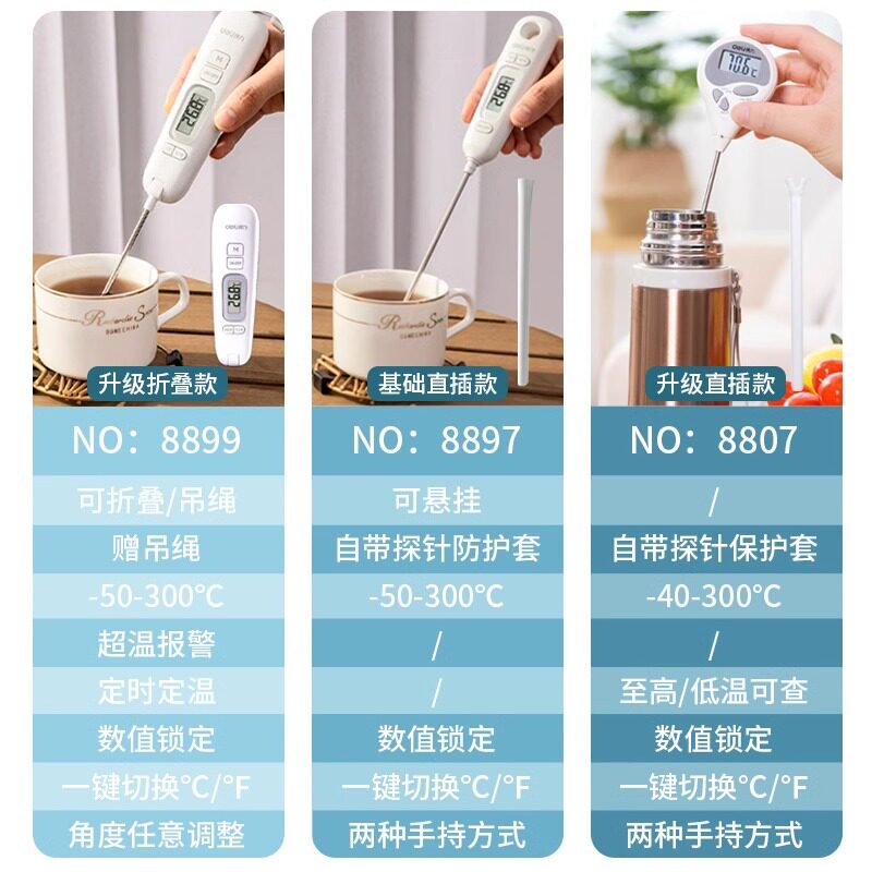 📚 得力温度计电子测温仪水温计厨房食品烘焙油温计高精度婴儿奶温计