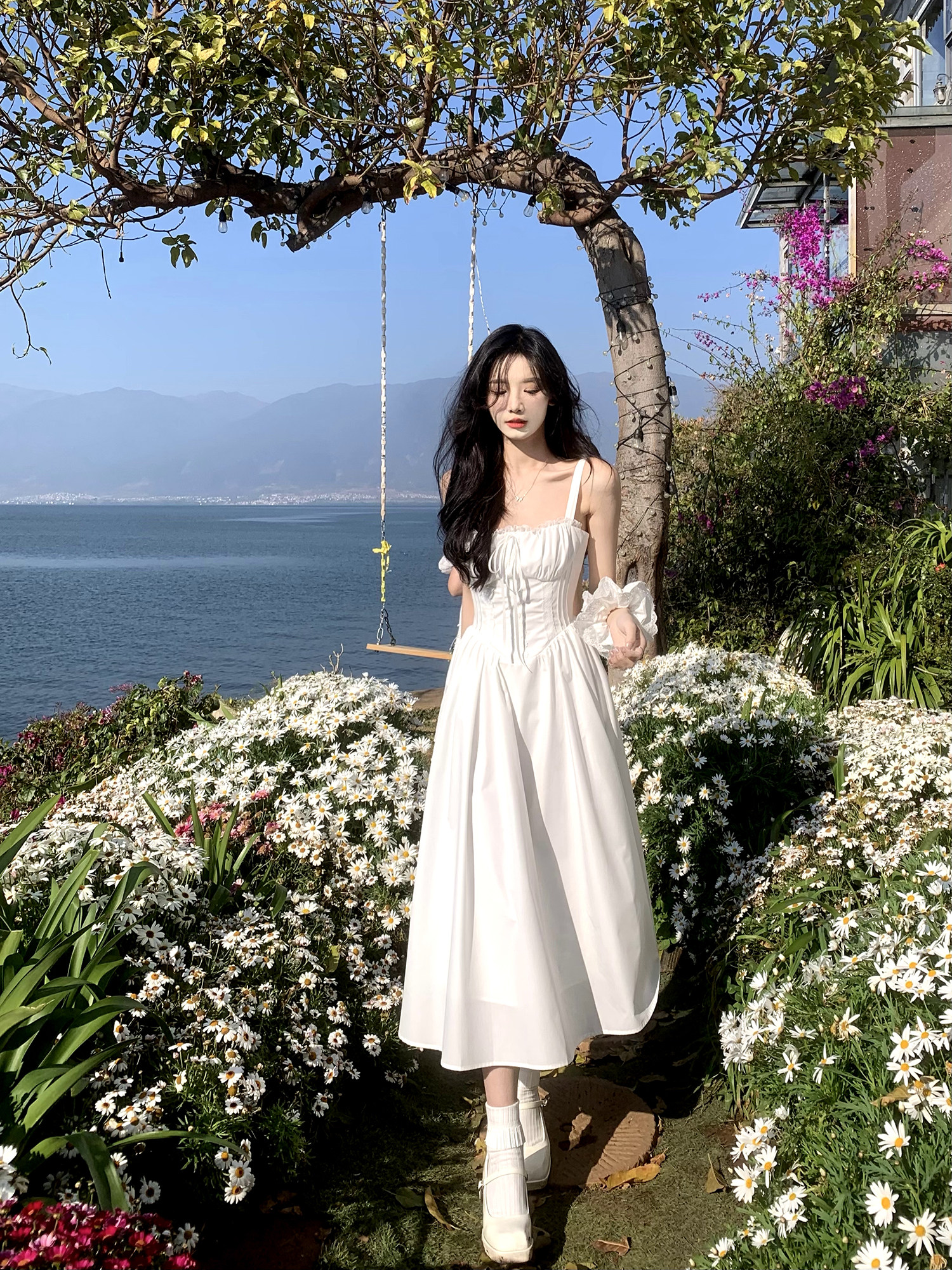 📚 一颗甜桃yikett《初恋花海》夏季后背系带吊带连衣裙女气质仙女裙
