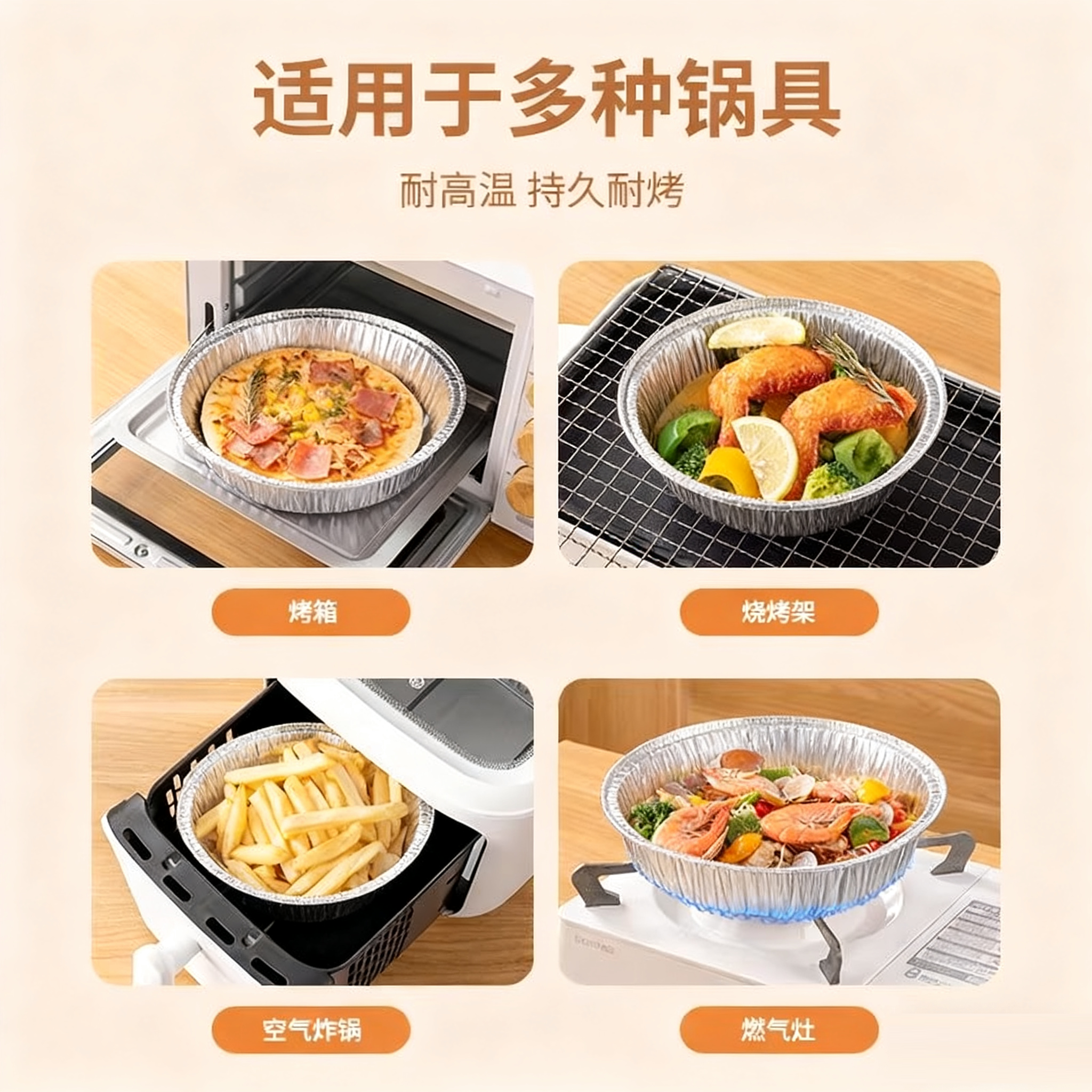 📚 空气炸锅专用锡纸碗可重复使用锡纸盒烤箱烘焙圆形铝箔盒家用烤盘