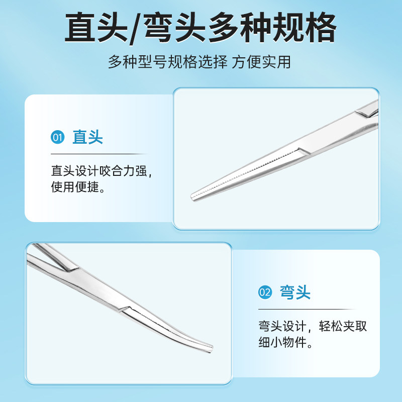 📚 莱弗凯止血钳医用镊子钓鱼不锈钢宠物小大号拔耳毛直头弯头持针器