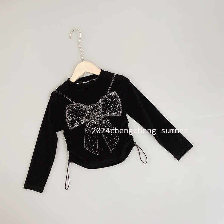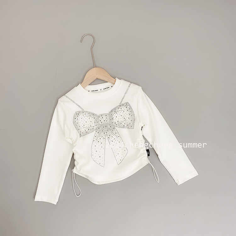 📚 女童烫钻蝴蝶结抽绳长袖短款打底衫春款2025新款韩版洋气百搭上衣