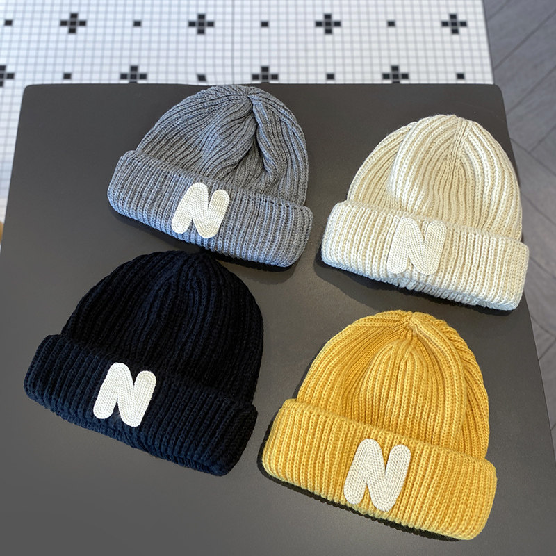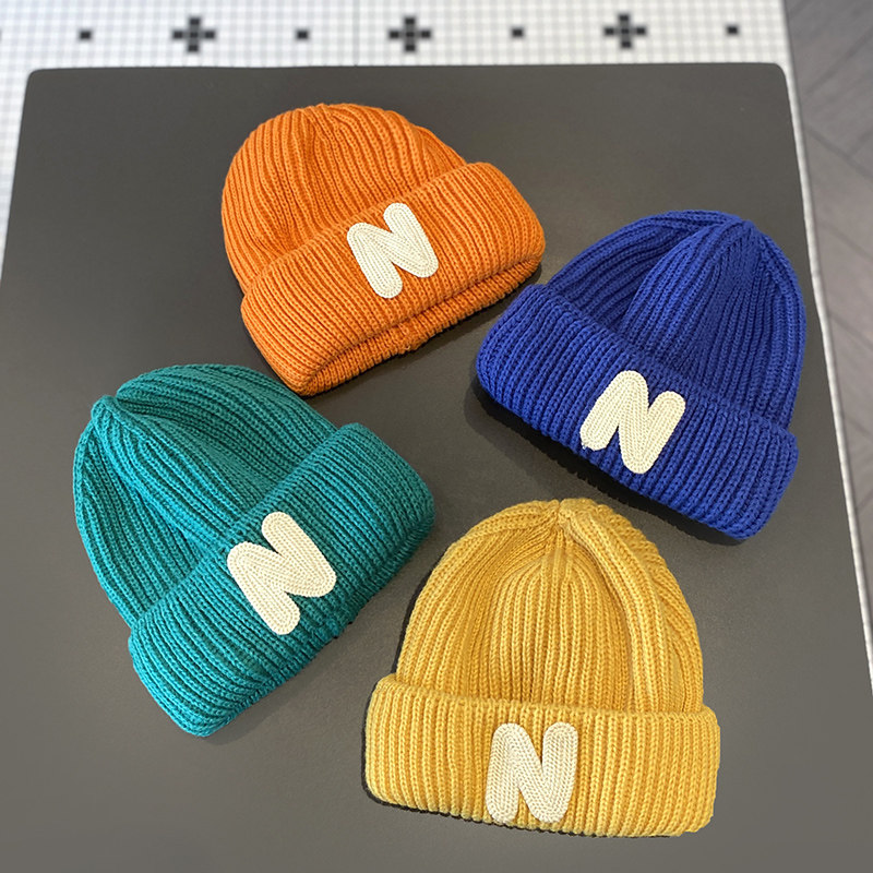 📚 儿童帽子韩版秋冬字母贴布针织帽男童女童保暖套头宝宝毛线帽冬潮