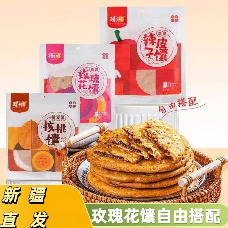 📚 疆小馕新疆美食夹心馕玫瑰花辣皮子核桃皮牙子烤囊饼零食点心