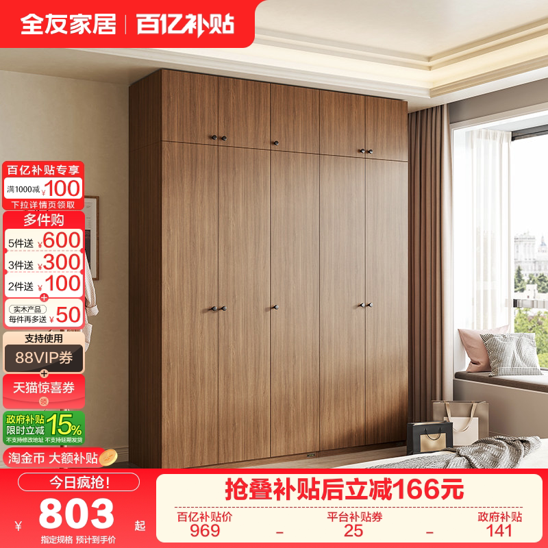 📚 政府补贴全友家居现代简约组合衣柜带顶柜子卧室家用收纳衣橱家具
