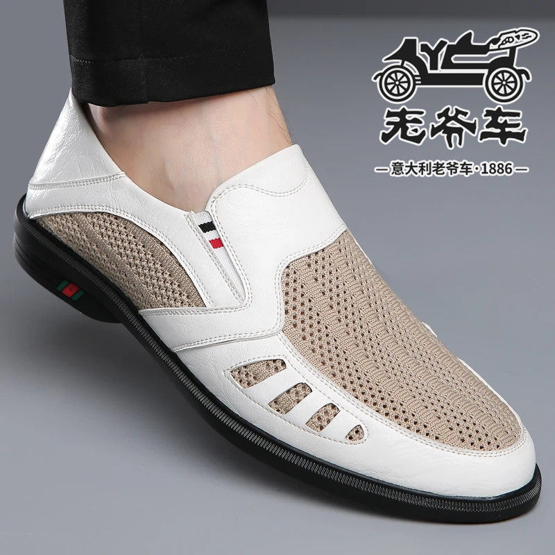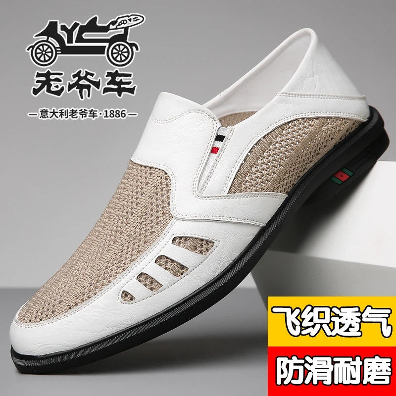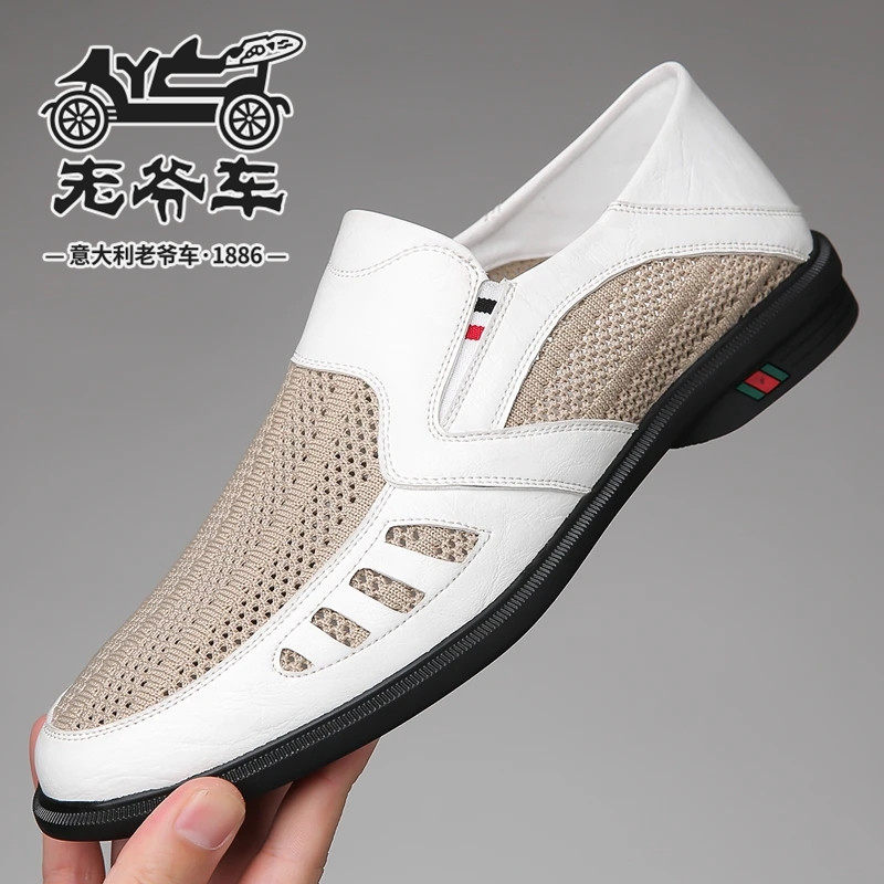 📚 老爷车男鞋2025夏季新款洞洞凉鞋男士脚蹬透气飞织网面休闲爸爸鞋