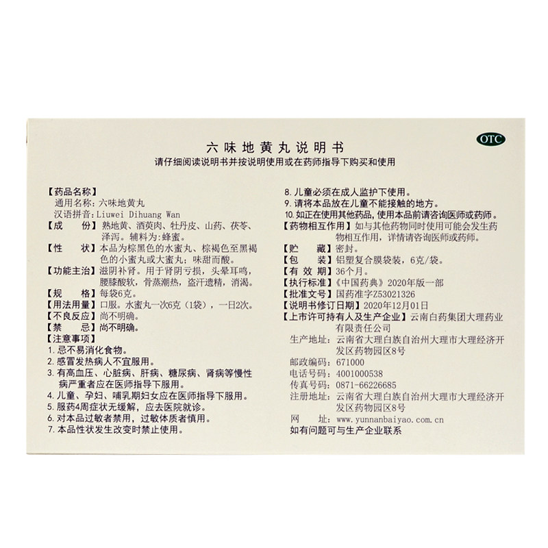 📚 云丰云南白药六味地地黄丸10袋补肾阴虚耳鸣潮热盗汗