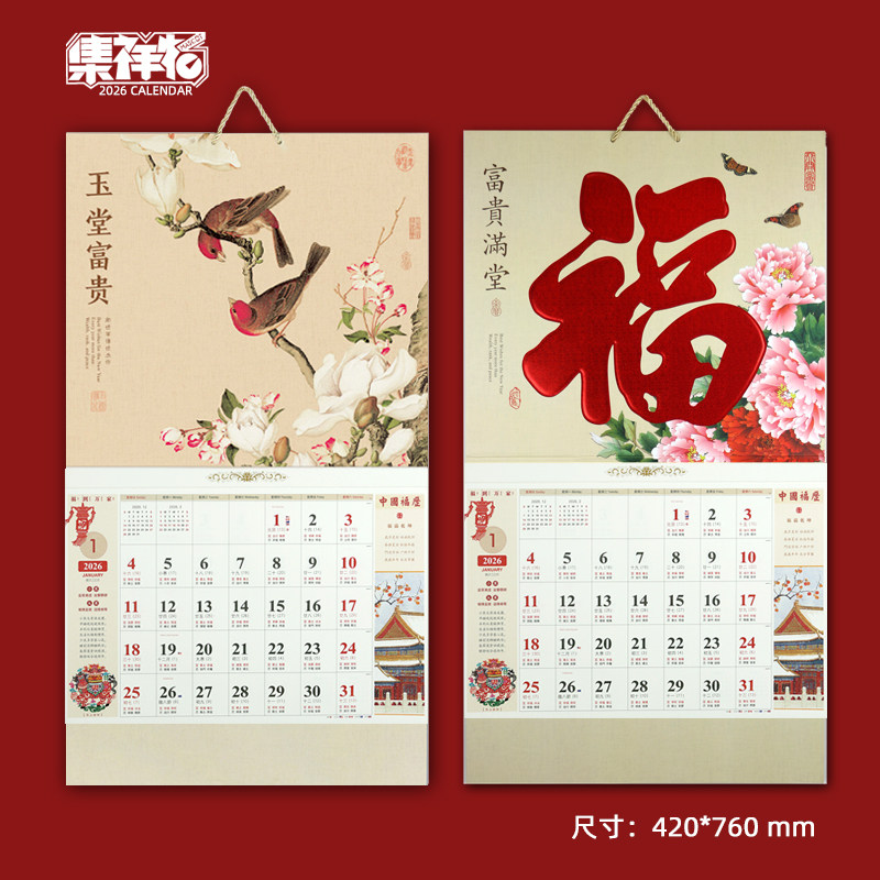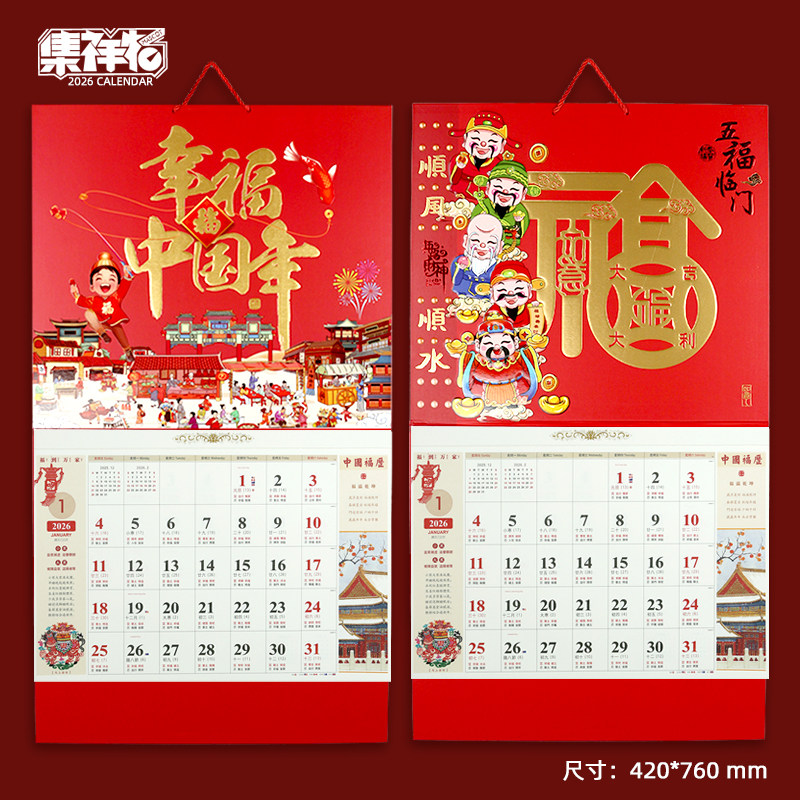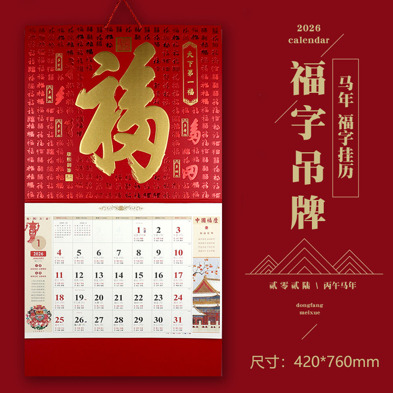📚 2026年天下第一福吊牌挂历五福临门日历中国新年月历长乐大字吊历