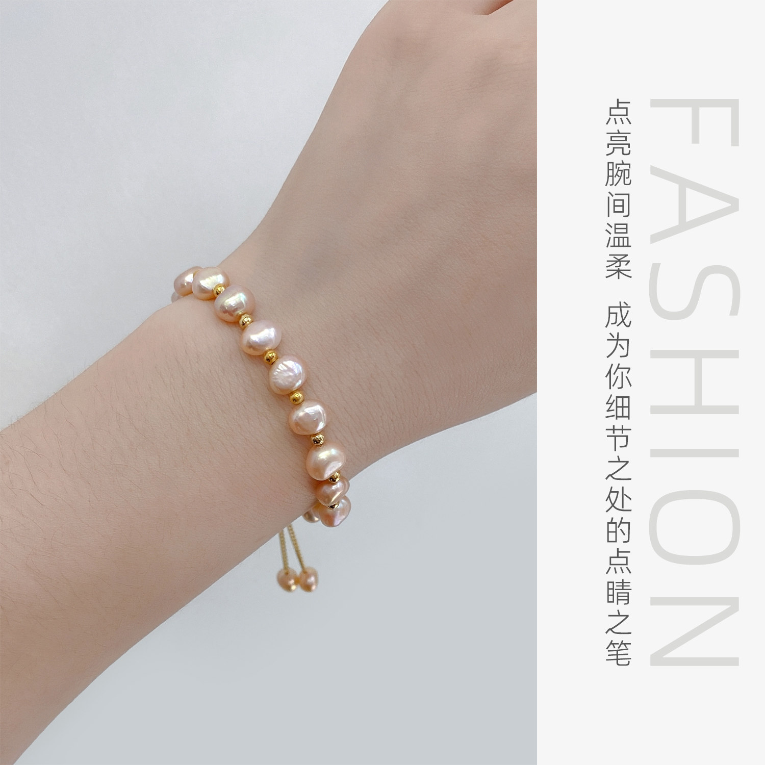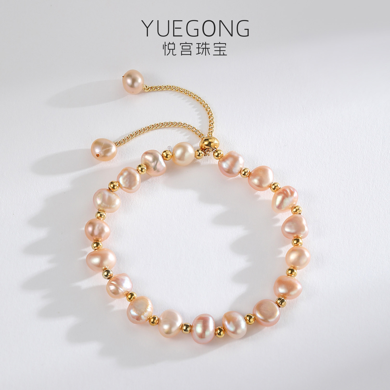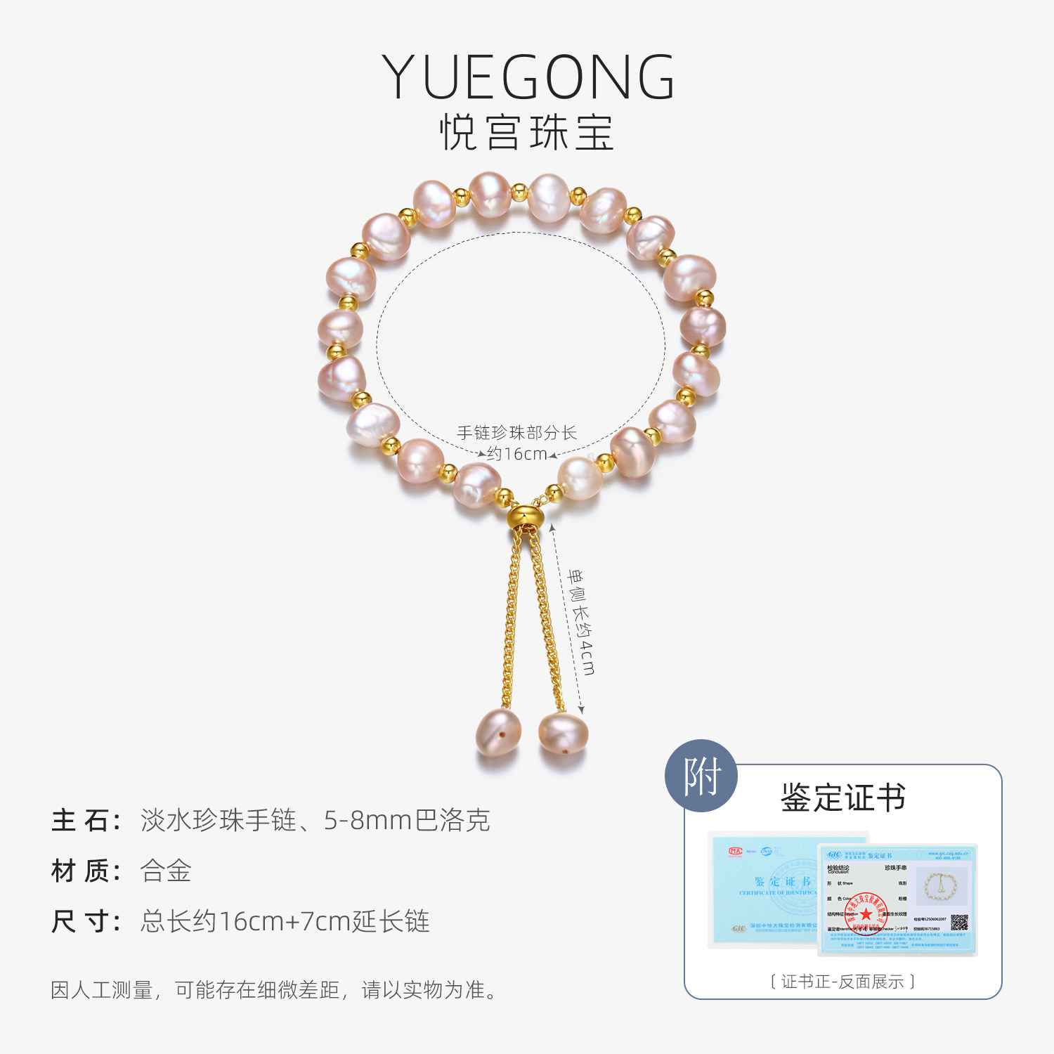 📚 悦宫珠宝绮罗 浪漫粉色淡水珍珠手链巴洛克珍珠手串双流苏提溜S