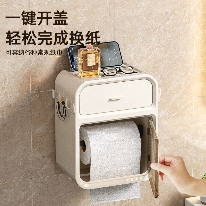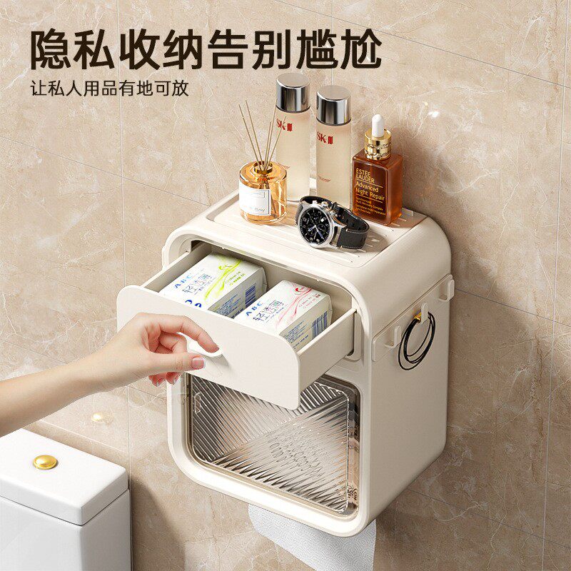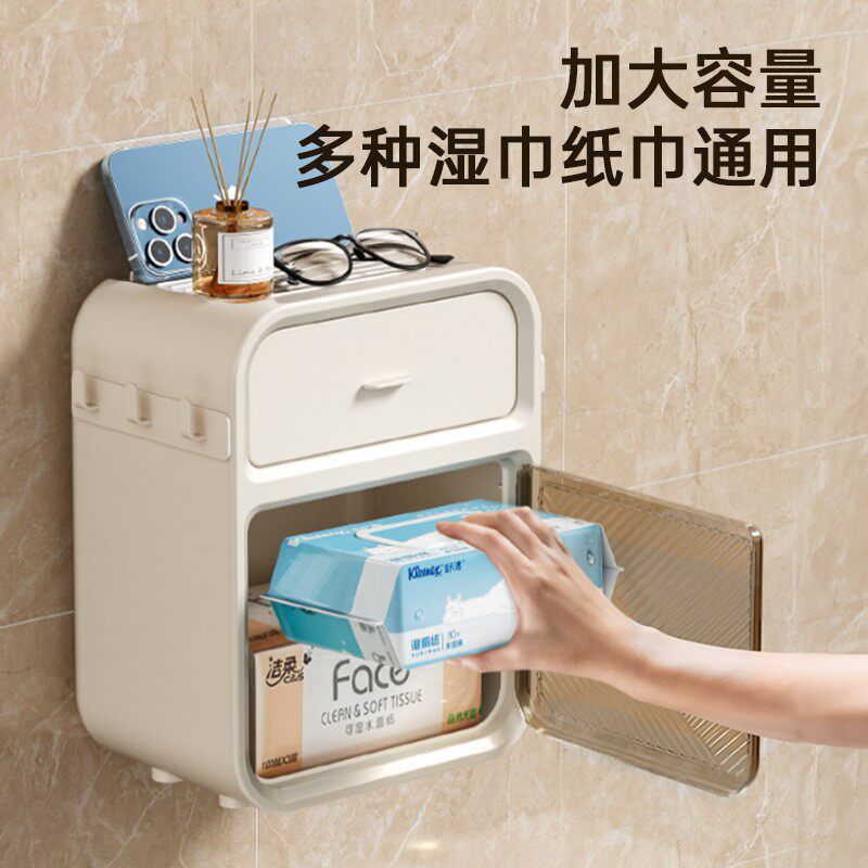 📚 挂壁式纸巾盒厕所卫生间卷纸器洗手间纸抽盒透明置物架可爱抽定制