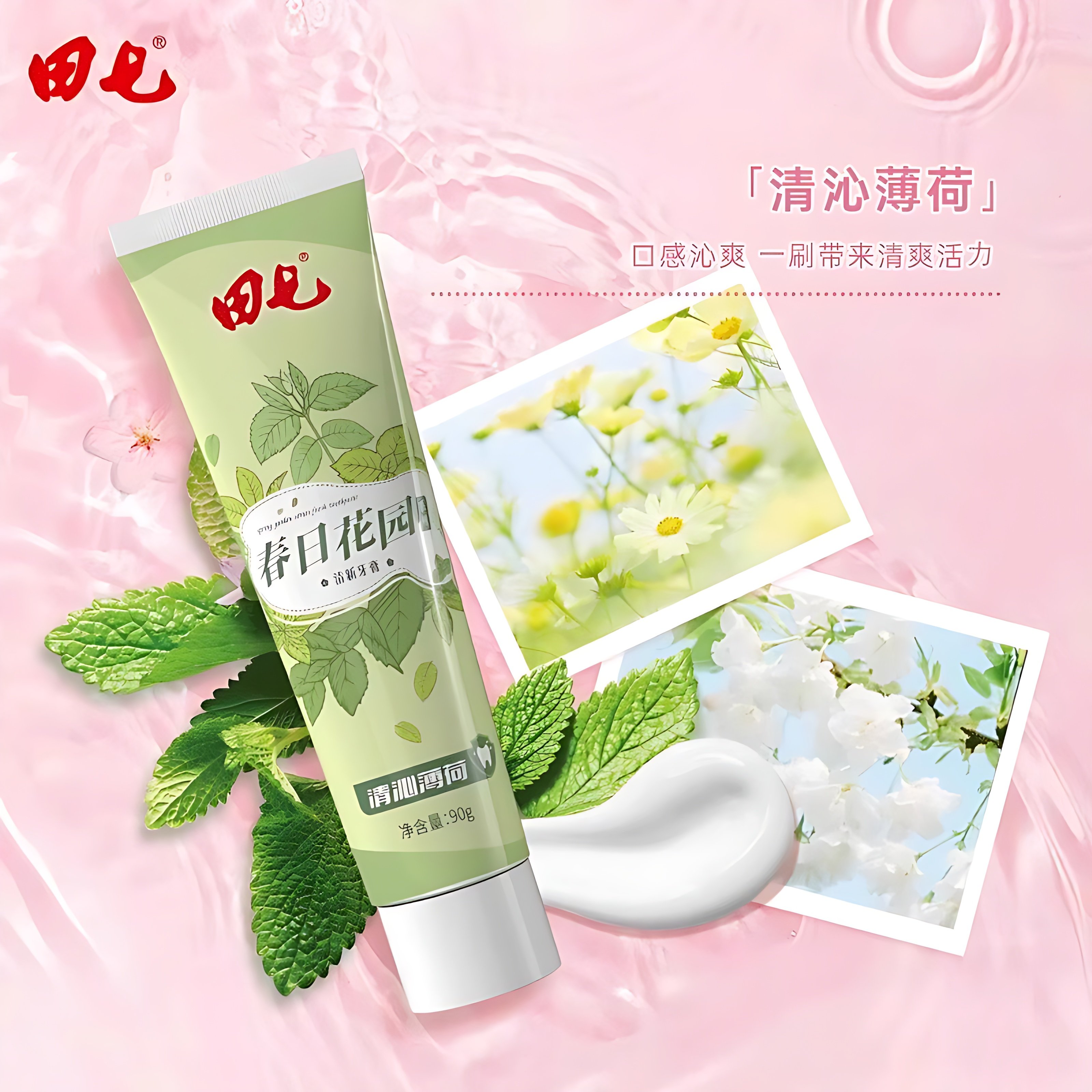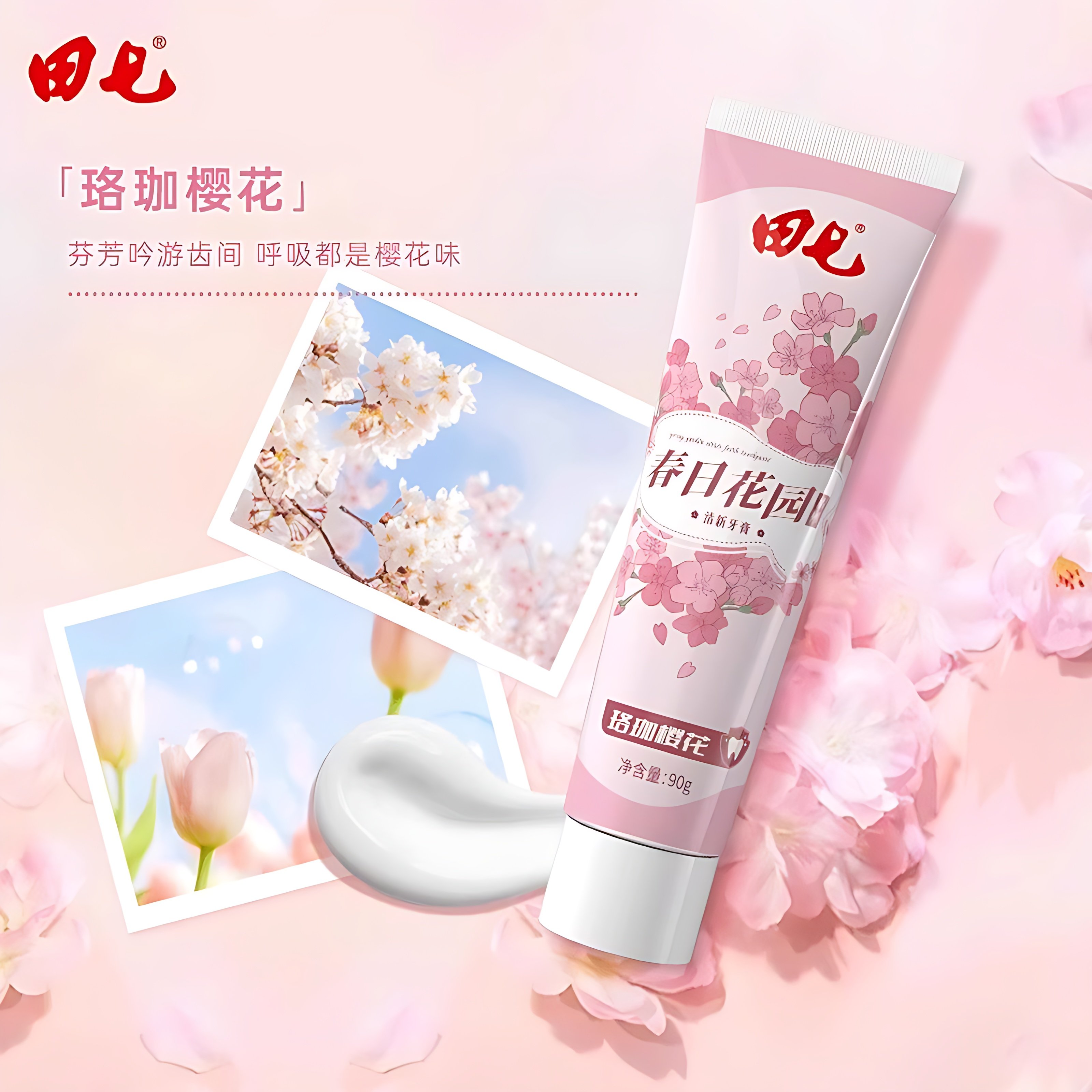 📚 田七春日花园系列牙膏90g薄荷樱花清新口气亮白护龈男女学生家庭