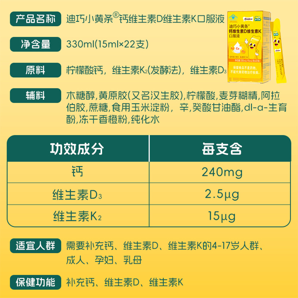 📚 迪巧小黄条钙维生素D维生素K口服液儿童小孩补液体钙d3K2钙22支*2
