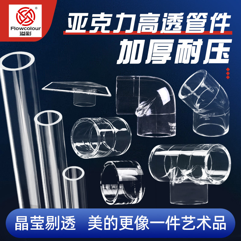 📚 溢彩亚克力透明直角90度45度弯头直接头三通管件水族硬管水管管帽