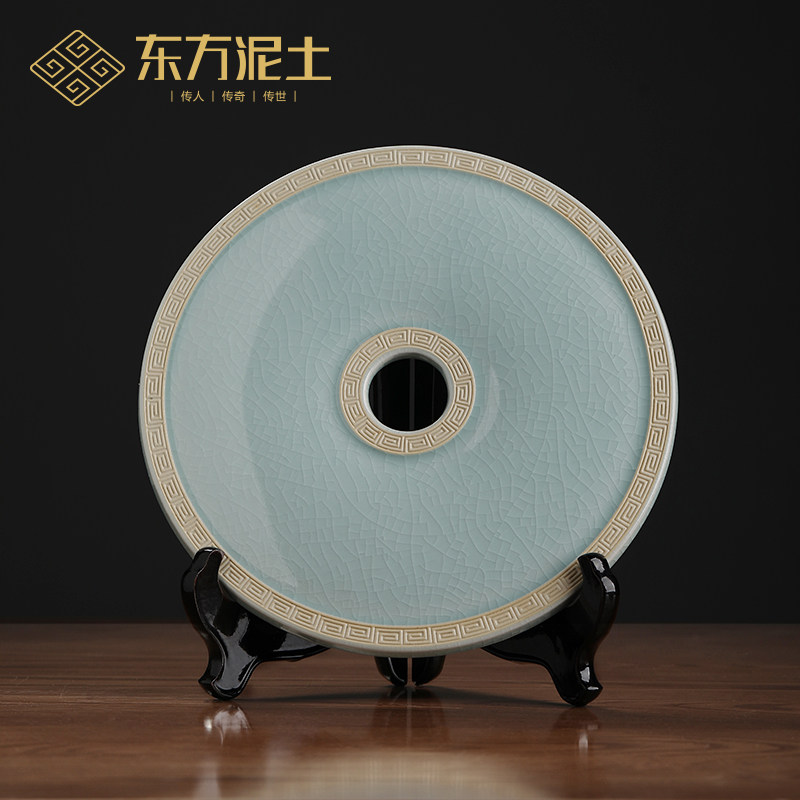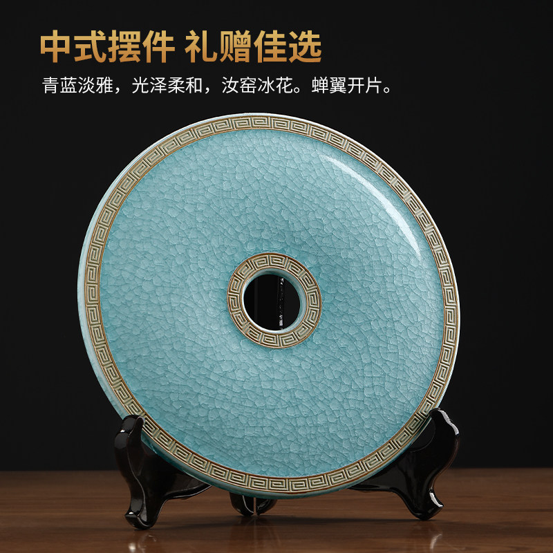 📚 东方泥土陶瓷汝窑平安扣和氏璧摆件客厅电视柜博古架新家乔迁礼品