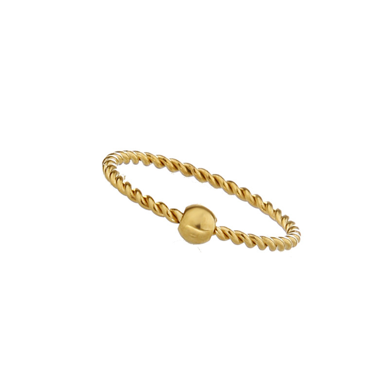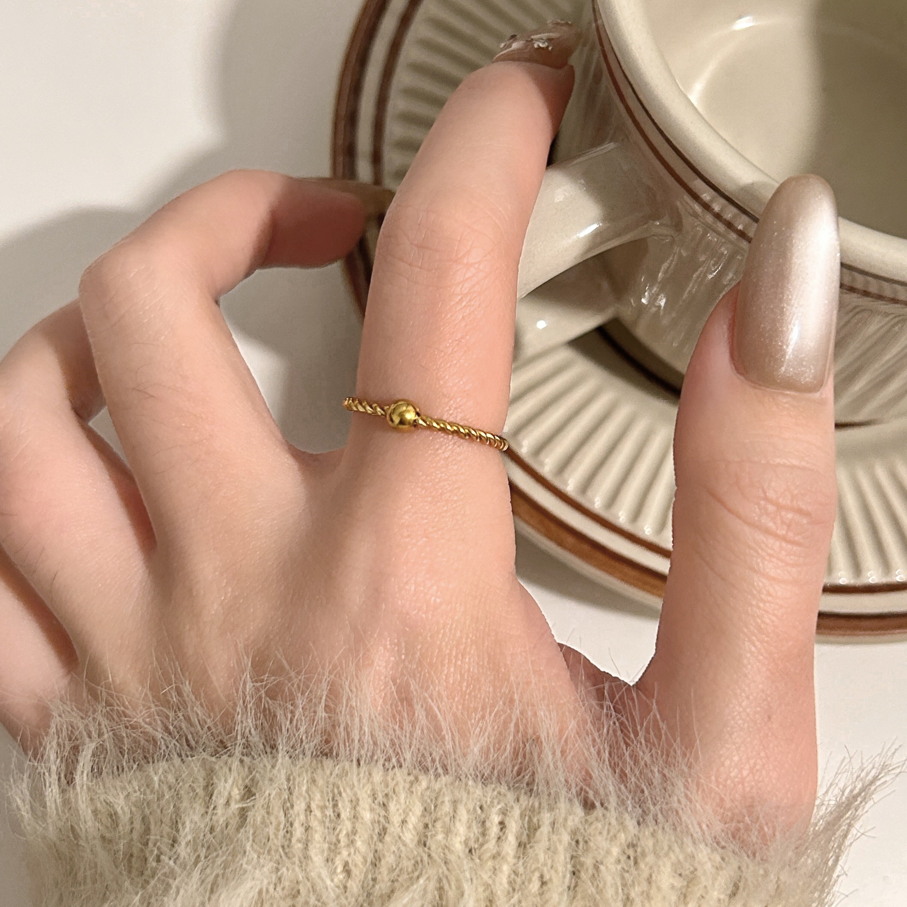 📚 新款麻花小金珠戒指女轻奢小众百搭戒指素圈简约食指戒钛钢不掉色