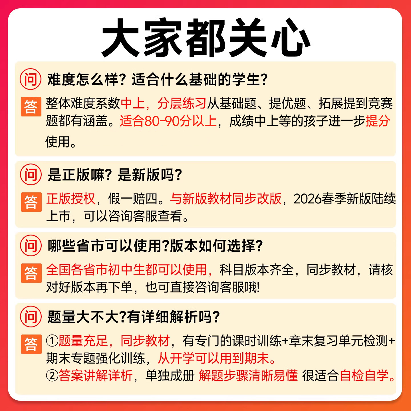 📚 2026春25秋实验班提优训练七年级八年级九年级上册下册数学物理化学语文英语人教苏教北师大科学浙教全套初中教材同步练习册必刷题