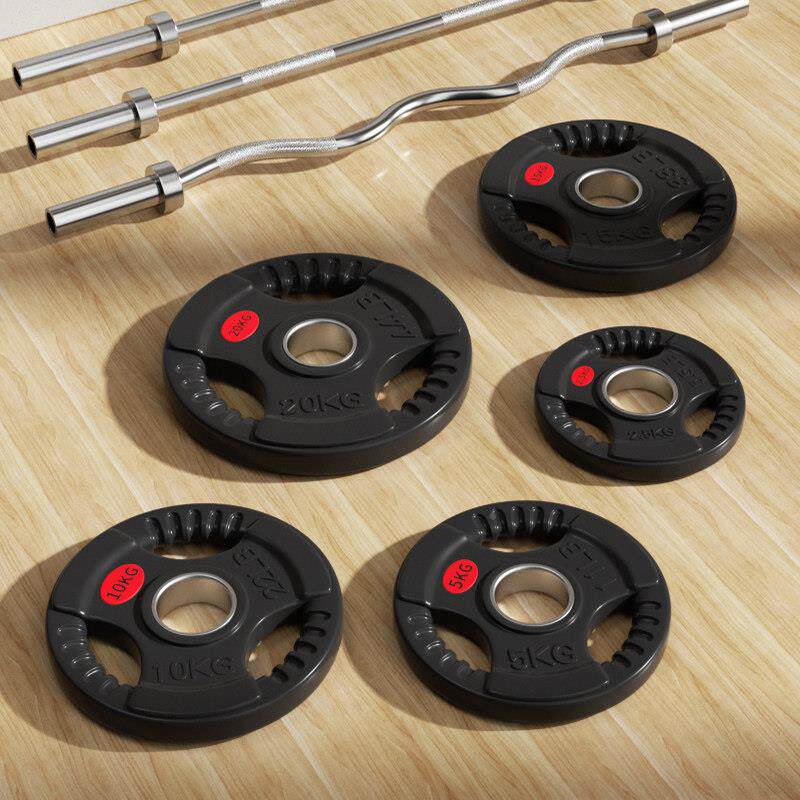 📚 手抓奥杆包胶杠铃大孔 全胶举重20kg小重量105kg20002.5/5橡胶片1