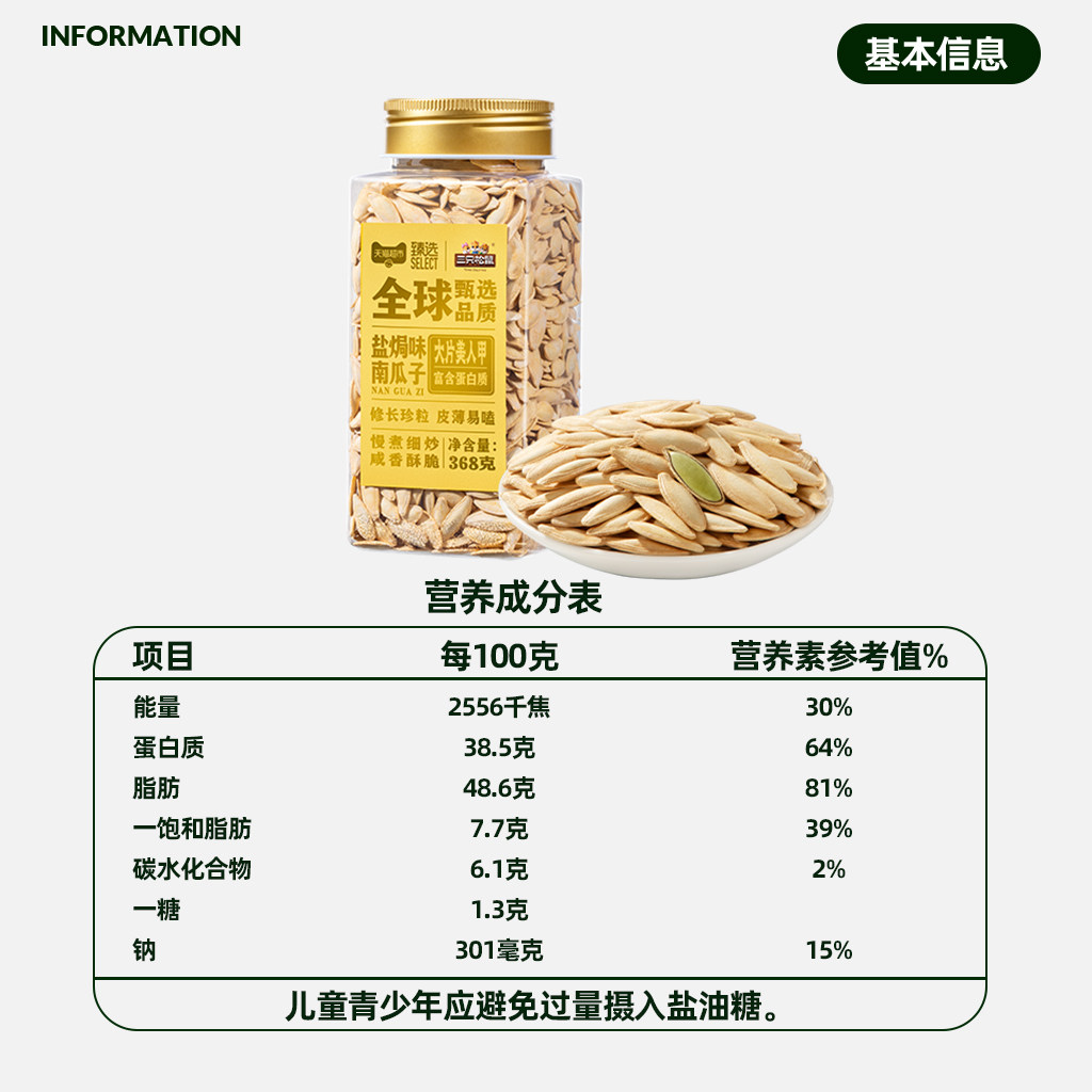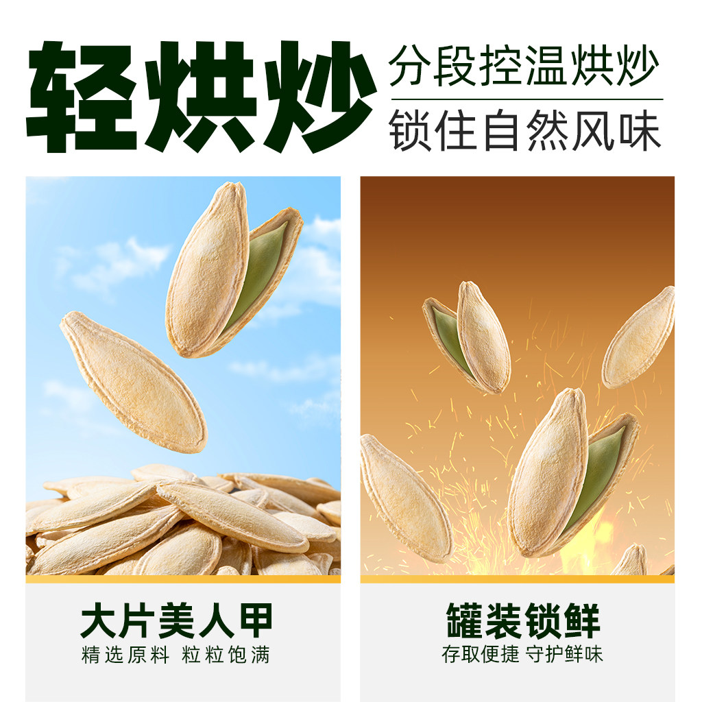 📚 臻选 三只松鼠罐装美人甲南瓜子盐焗瓜子坚果炒货休闲零食368g