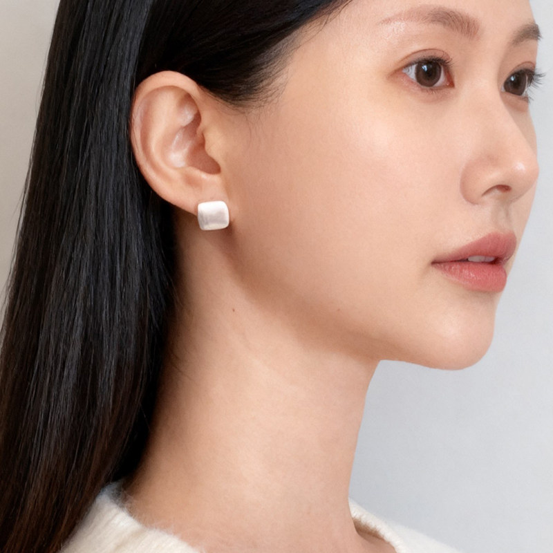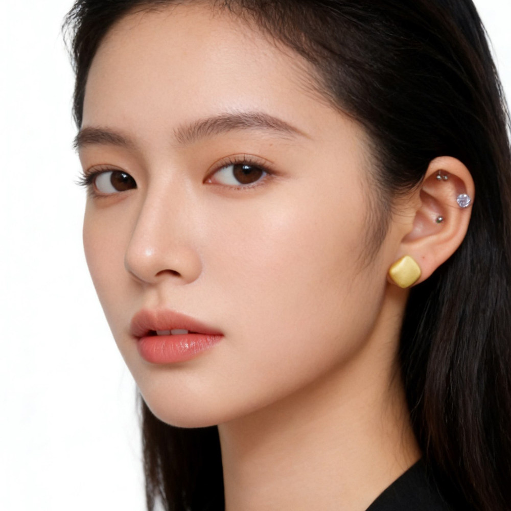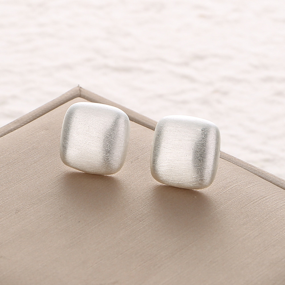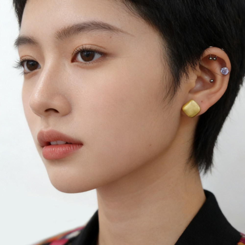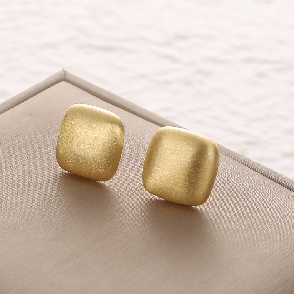 📚 拉丝方糖金色耳钉女士高级感轻奢气质大气耳环时尚耳饰小众设计感