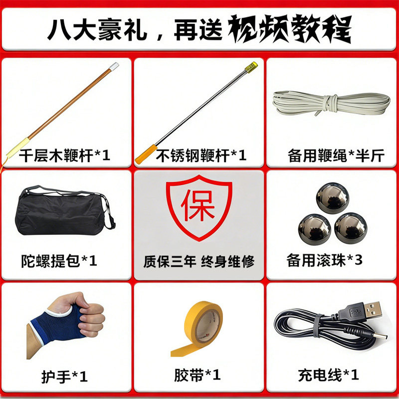 📚 金属陀螺健身成人中老年发声发光老牛音乐广场用鞭子抽打冰嘎冰尜