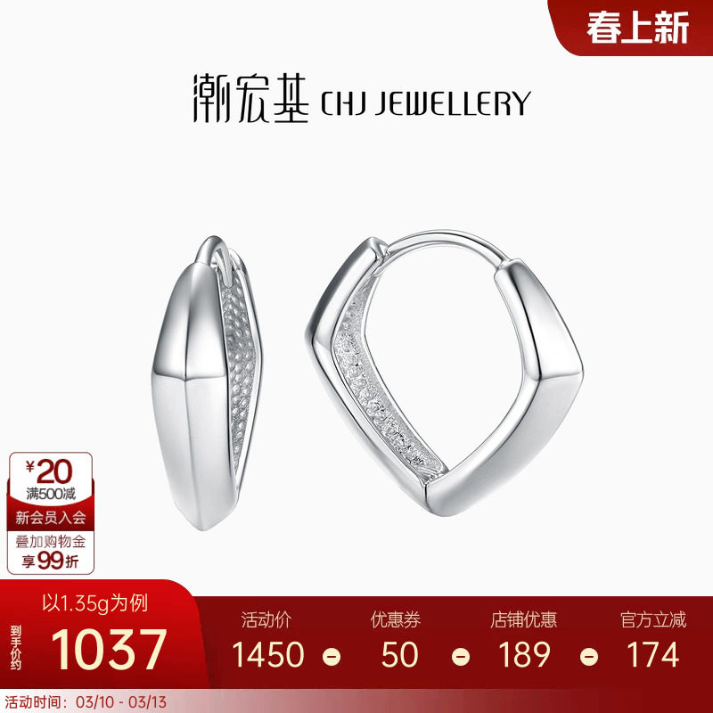 17¥ CZ057 0EGiUv4DGHQ¥ https://m.tb.cn/h.i3uEK5z 潮宏基摩登百搭铂金耳钉PT950耳环耳饰耳扣潮酷单只通勤百搭礼物 --------------------- 【原售价】1,850元 【优惠券】50元 【券后价】1,800元。