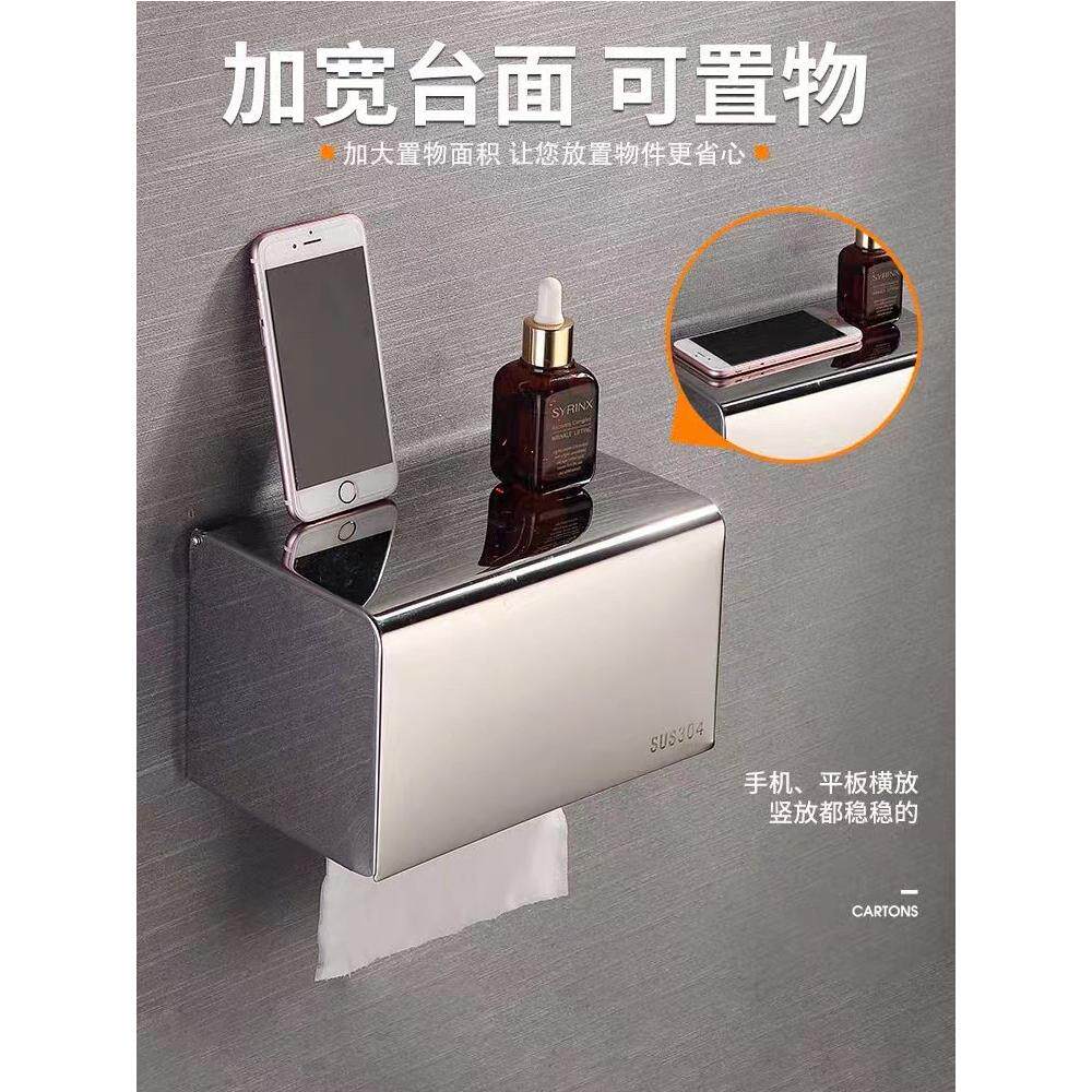 📚 304不锈钢方型纸巾盒卫生间防水卷纸器厕所手纸盒免打孔浴室纸架