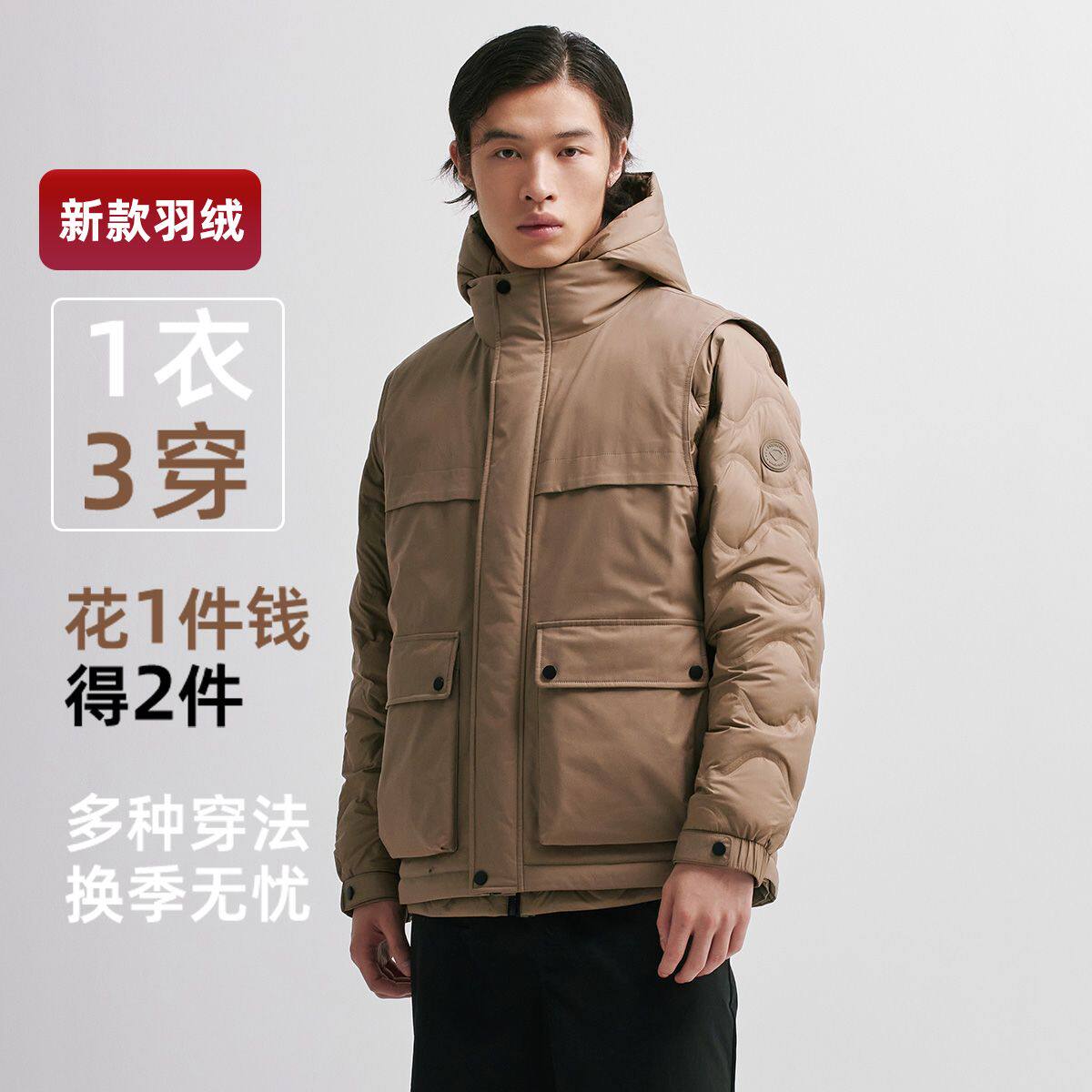 📚 千仞岗秋冬季男款羽绒服连帽马甲二合一防风保暖短款外套Y298502Y