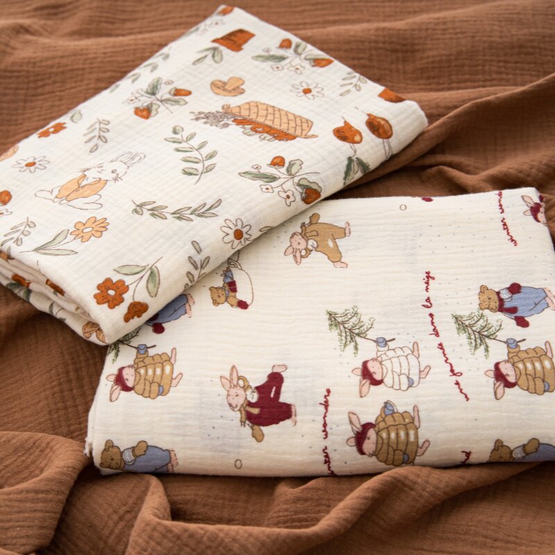 📚 A类母婴级100%纯棉双层纱布料无荧光透气面料手工DIY床品睡衣童装
