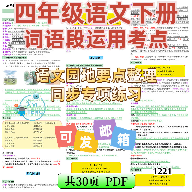 📚 小学语文四年级下册语文园地重点词句段运用考点汇总电子版资料