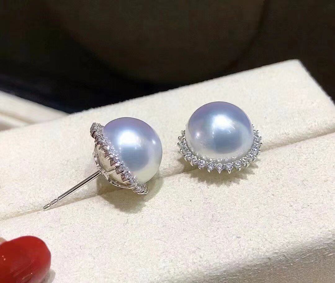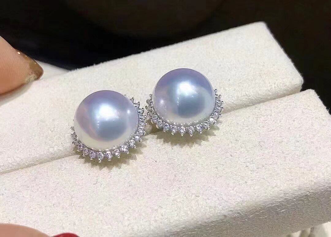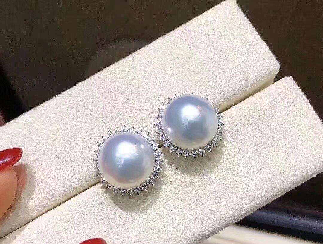 📚 18K金镶南非高品质钻石9~10mm天然澳白海水珍珠耳钉耳饰真金真钻
