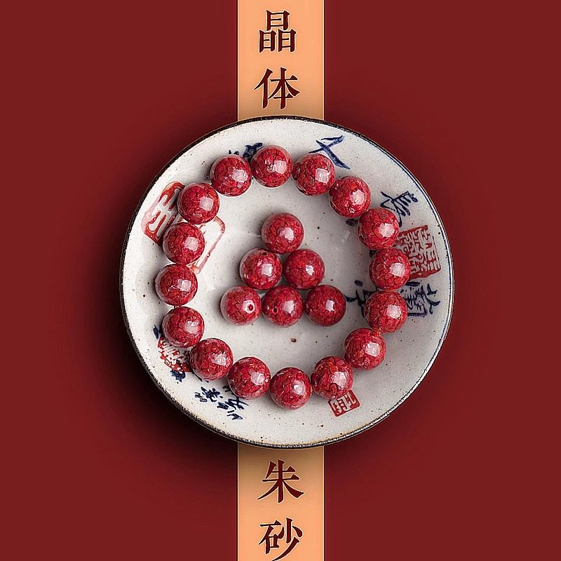 📚 三号井正品朱砂手串透光晶体湘西辰砂宝库无根砂特级手链男女款礼