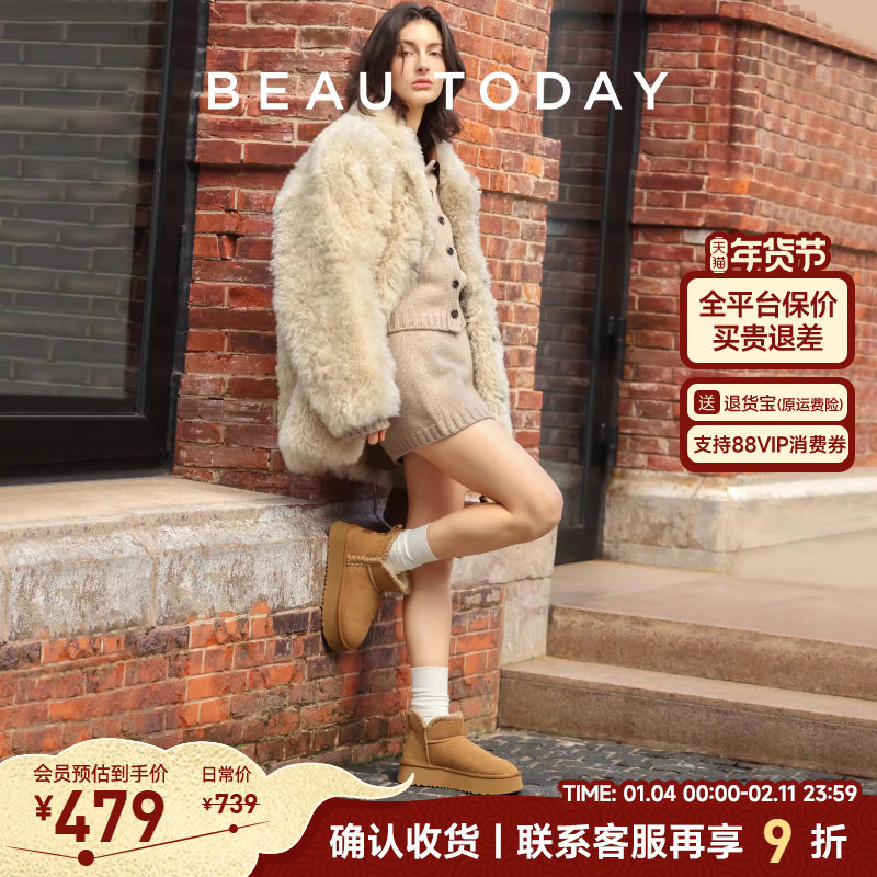 📚 BeauToday厚底雪地靴女款春季中筒靴子加绒保暖棉鞋BT毛毛鞋