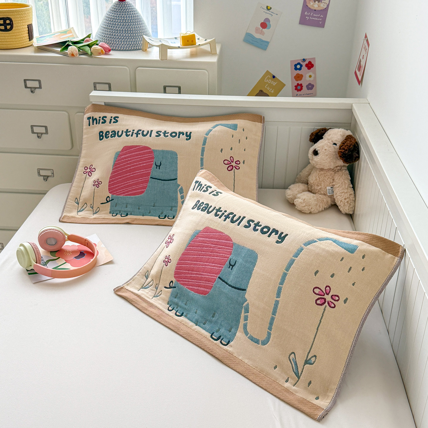 📚 安懒懒 A类婴幼儿全棉纱布枕巾小号枕头巾纯棉垫巾柔软亲40x60cm