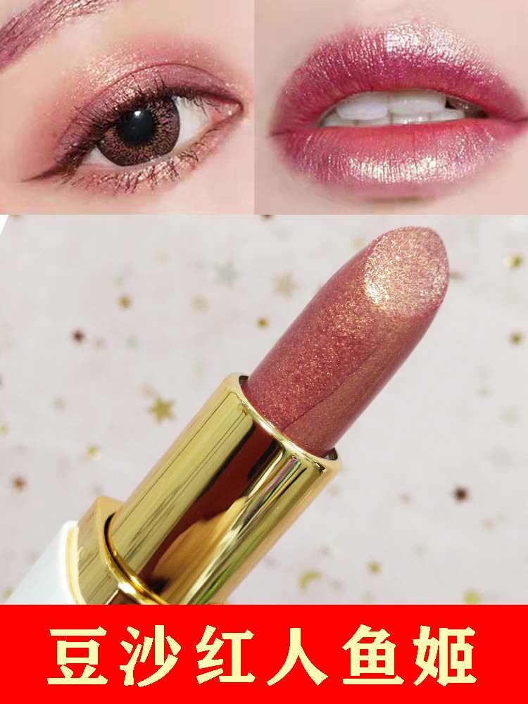 📚 2025人鱼姬口红眼影两用流沙金粉色带闪亮珠光鎏金星空钻石