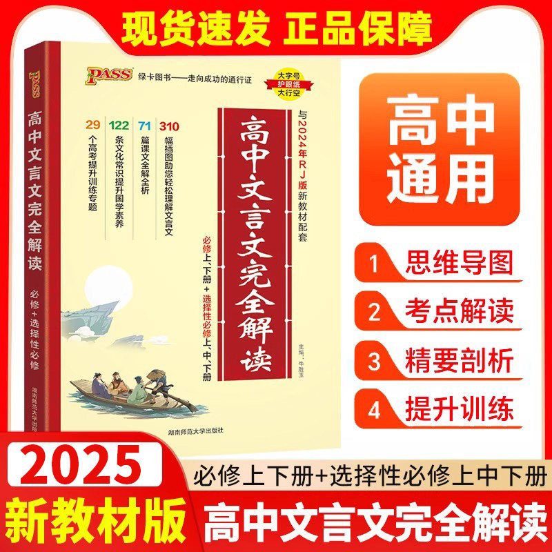 📚 2025版高中文言文完全解读pass绿卡高中语文古诗文译注及赏析详解一本全人教版必修选修全解全析阅读训练步步高一高二高三解析书