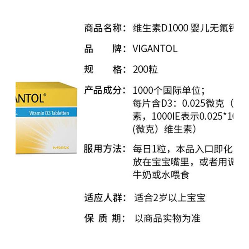 📚 现货德国默克D1000 VIGANTOL 维生素D3 无氟VD 儿童婴幼儿200粒