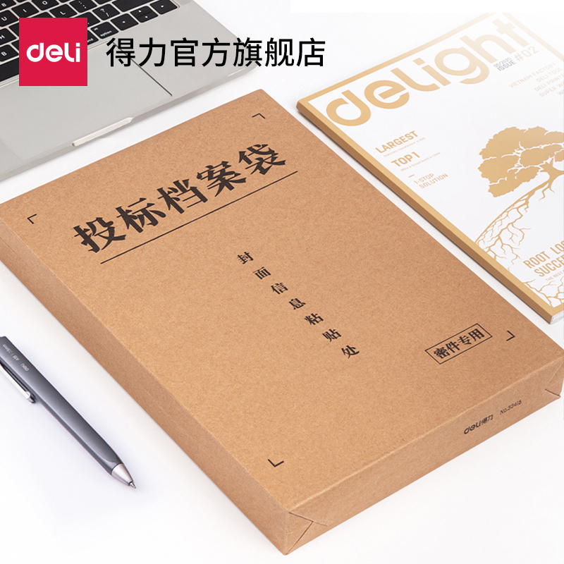 📚 得力投标档案袋A4牛皮纸加厚文件袋纸质4cm投标专用资料袋加大容量文件袋文件夹招标用办公用袋赠封条 33415