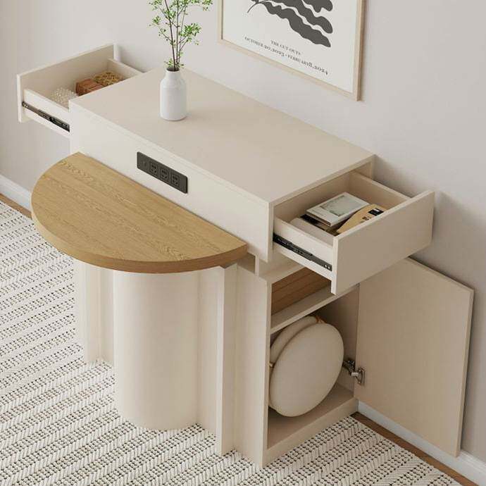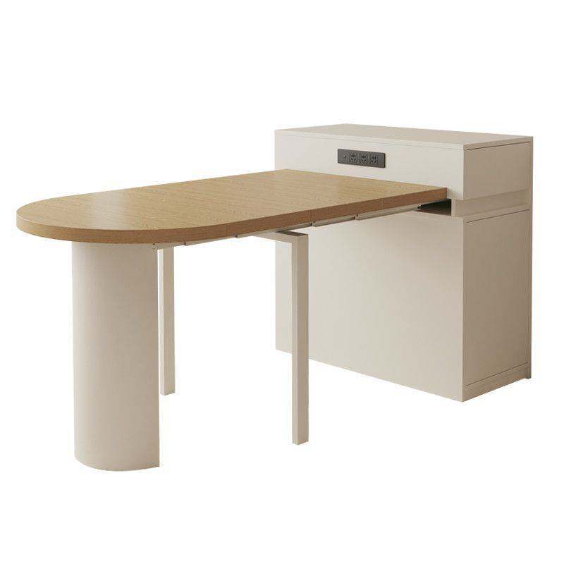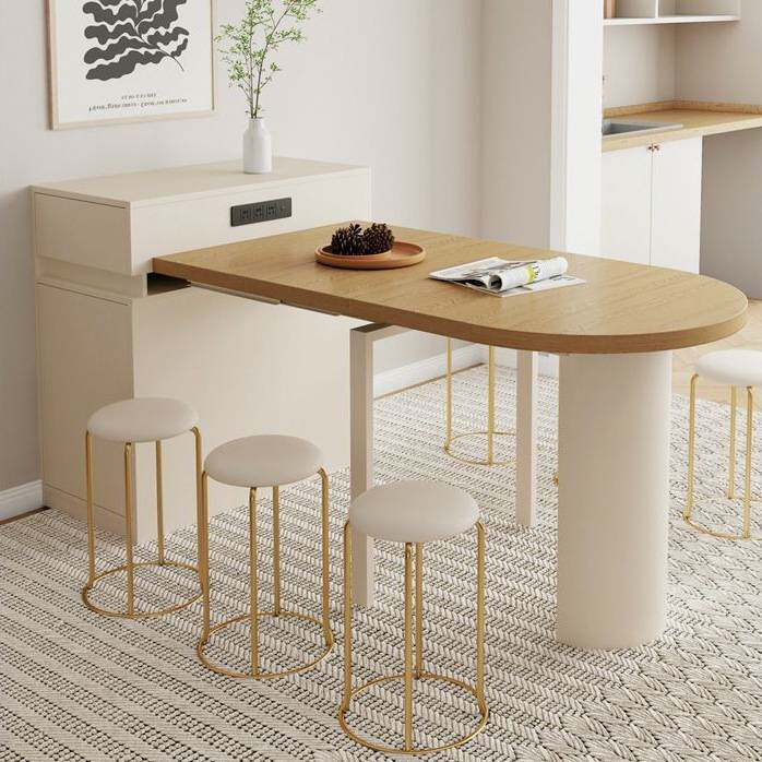 📚 奶油风岛台餐桌一体家用可伸缩半圆桌椭圆可折叠餐桌小户型饭桌椅