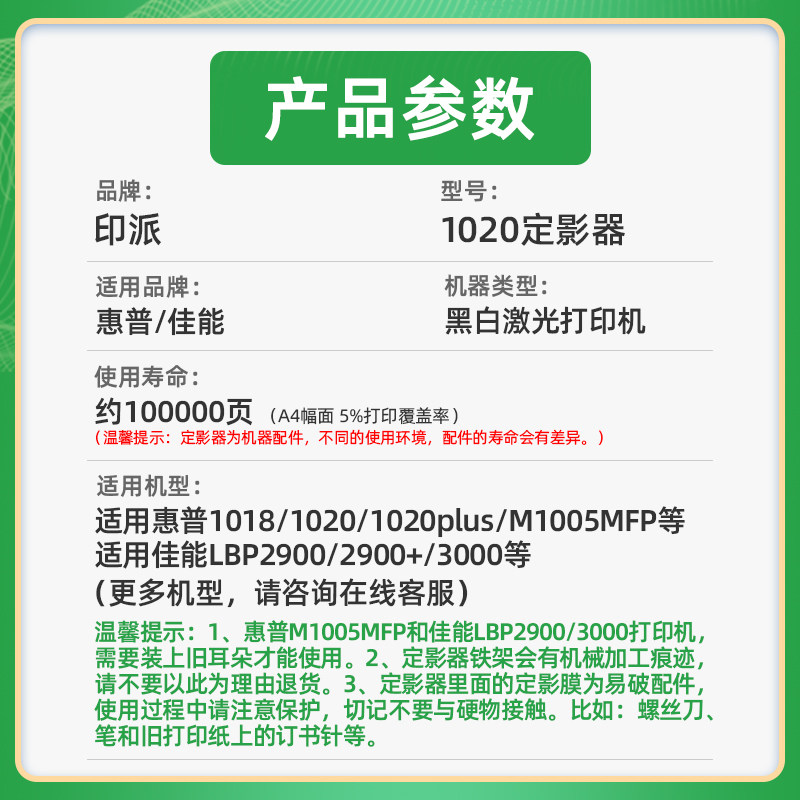 📚 适用惠普HP1020定影器M1005加热组件LaserJet 1020plus定影组件1018 M1005MFP激光打印机加热器hp1005热凝器