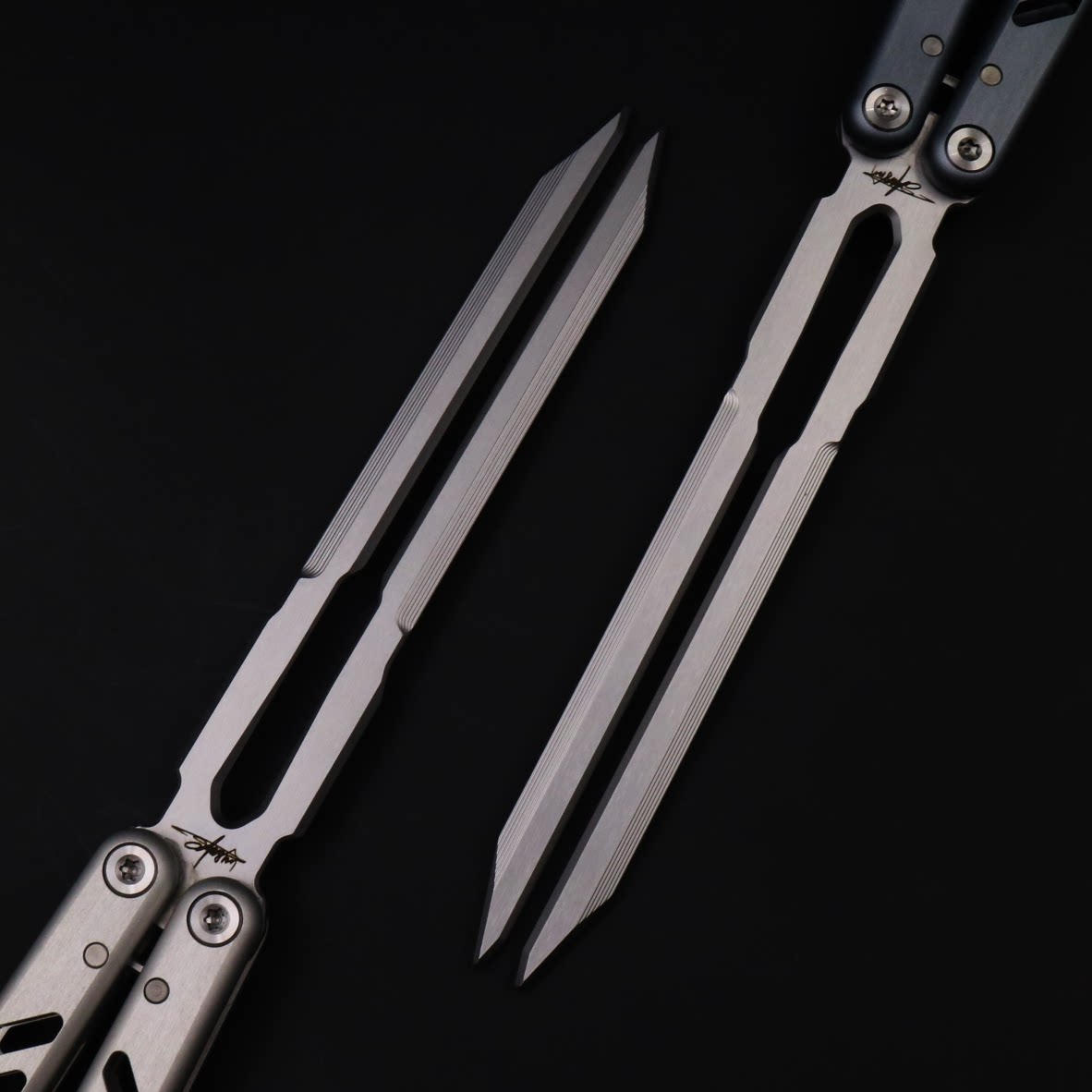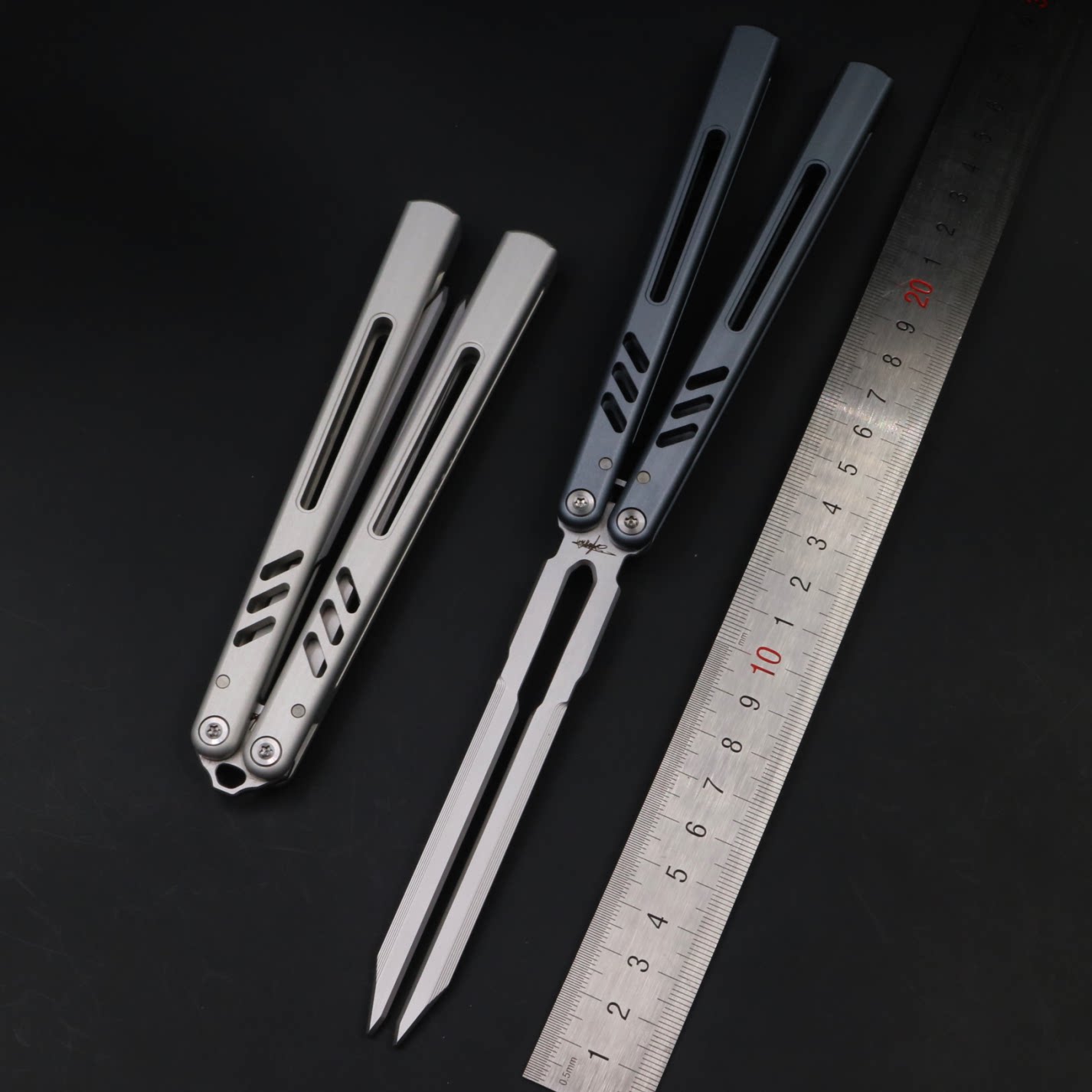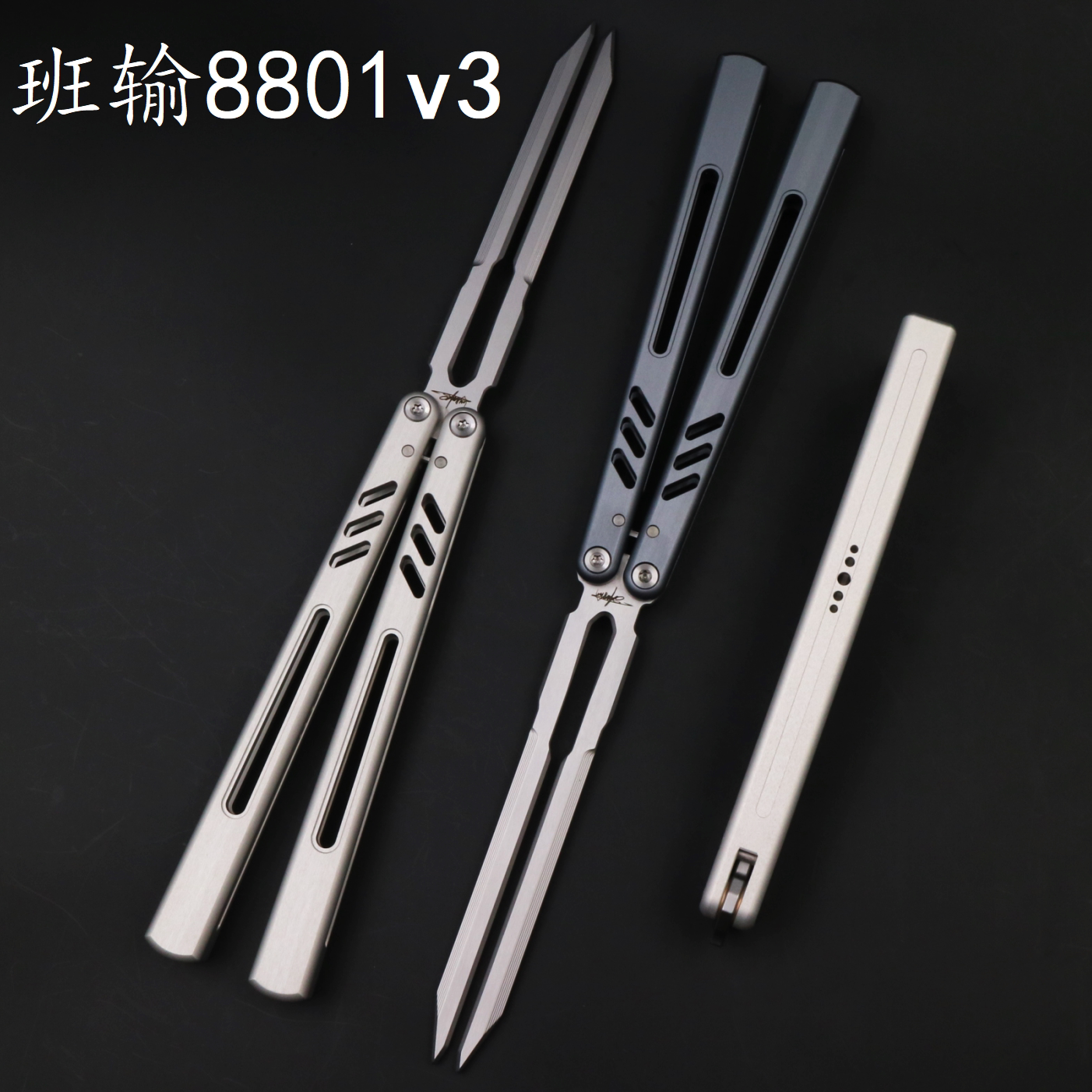 📚 班输8801v3 七系铝柄 玻璃音 音叉刃 蝴蝶刀练习刀 未开刃