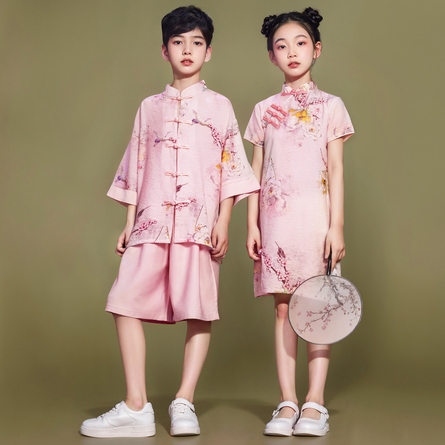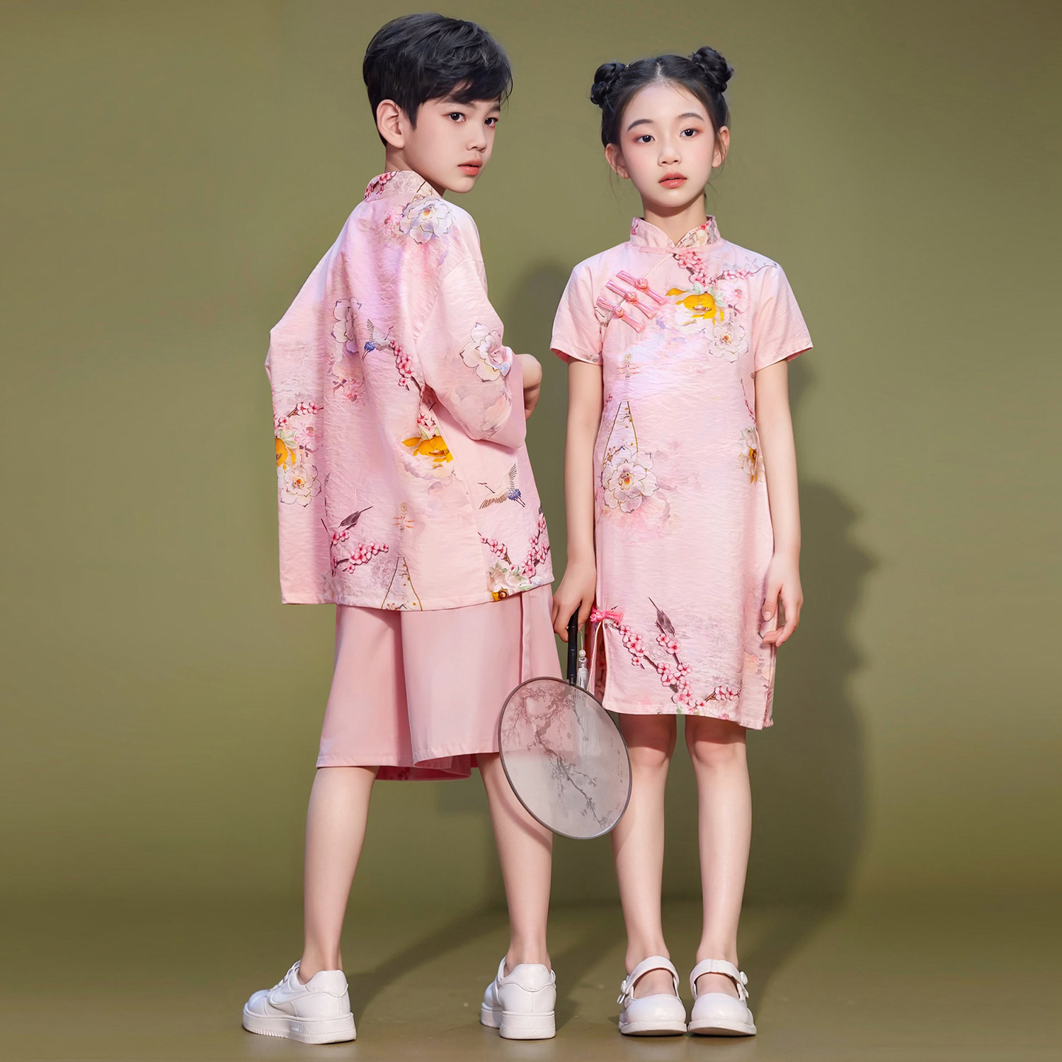 📚 儿童大合唱演出服男童国学服国风汉服女童旗袍夏装小学生表演服装