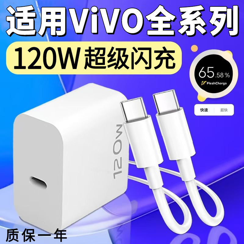 📚 适用vivo120W瓦闪充x90氮化镓充电器X100系列通用智能极速充电数据线双Type-C接口ViVO充电头显示小数点套装