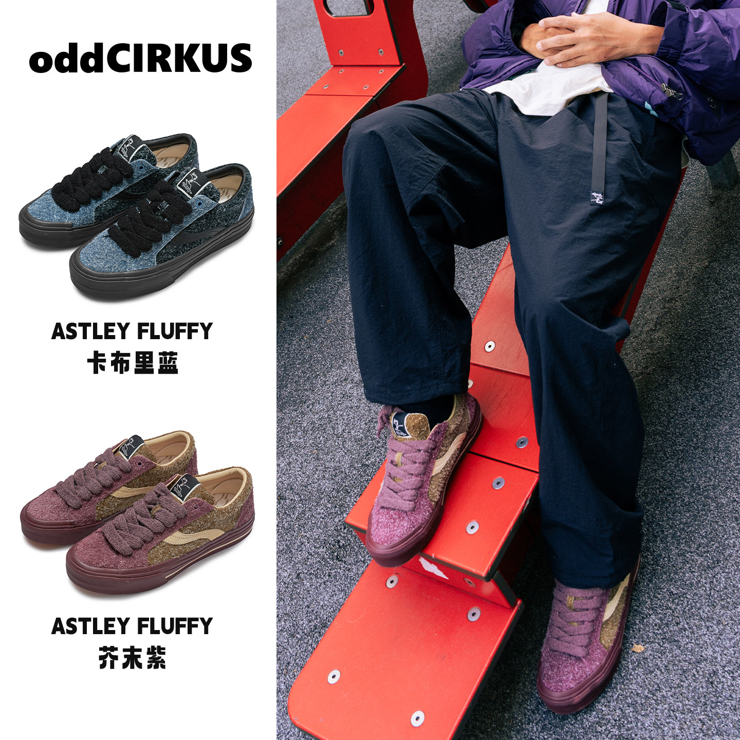 📚 oddCIRKUS Astley FLUFFY 日系复古滑板鞋雪花长毛翻毛皮休闲板鞋