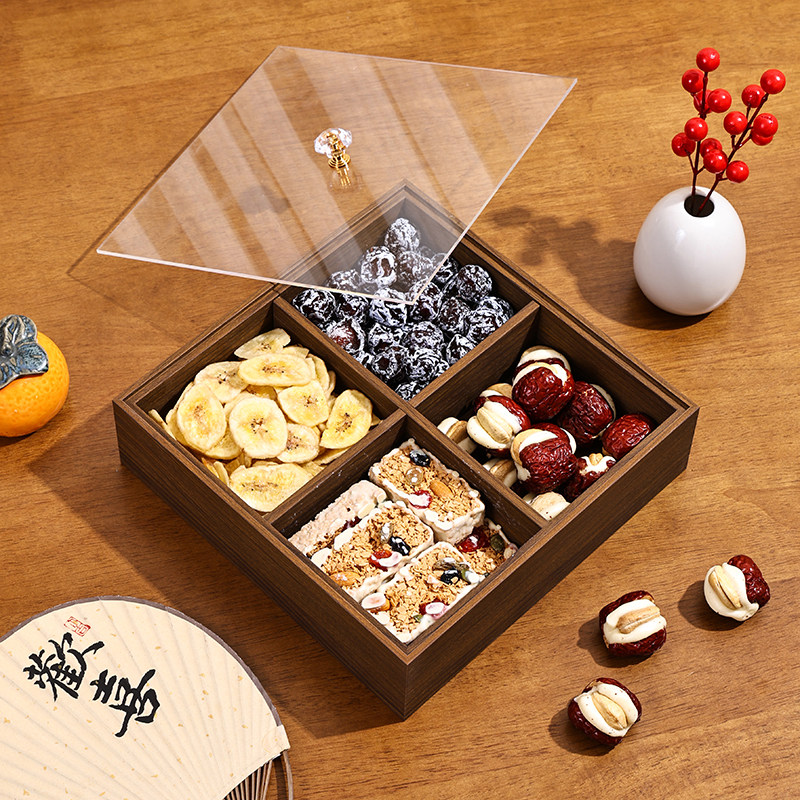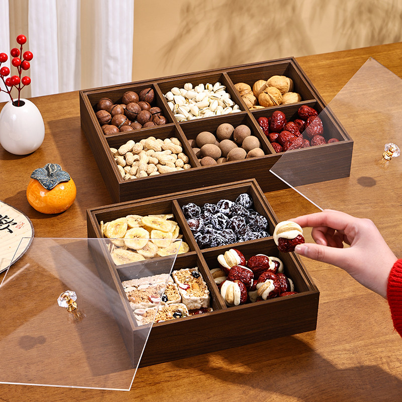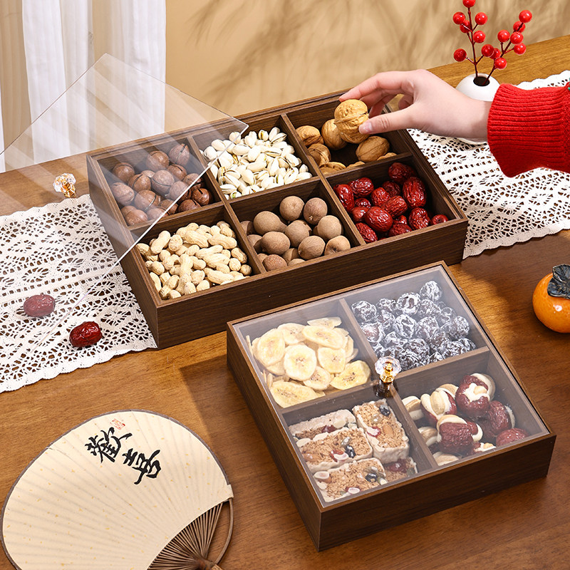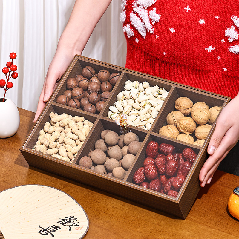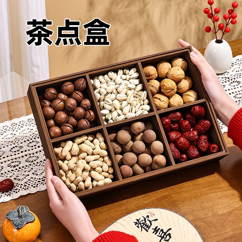 📚 围炉煮茶托盘水果盘零食盘点心盘四宫格木质六宫格干果盘婚礼果盘