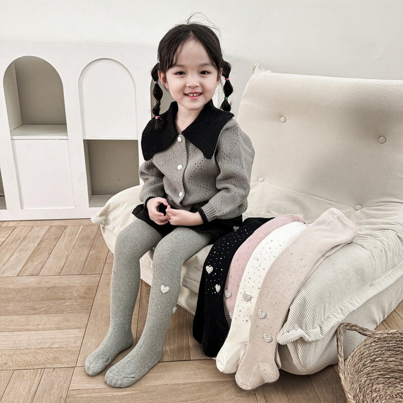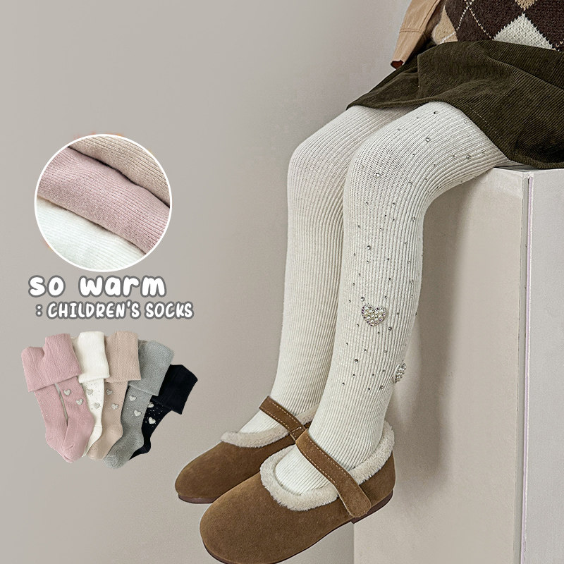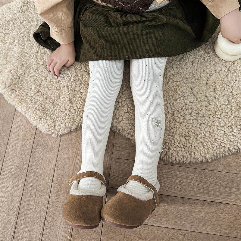 📚 秋冬宝宝薄绒连裤袜爱心小钻磨毛韩版女童洋气配裙中厚加绒打底裤