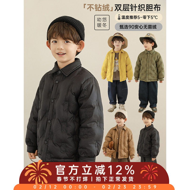 📚 幼悠男童2025新款简洁翻领衬衫羽绒服冬季时尚宽松防风保暖外套潮