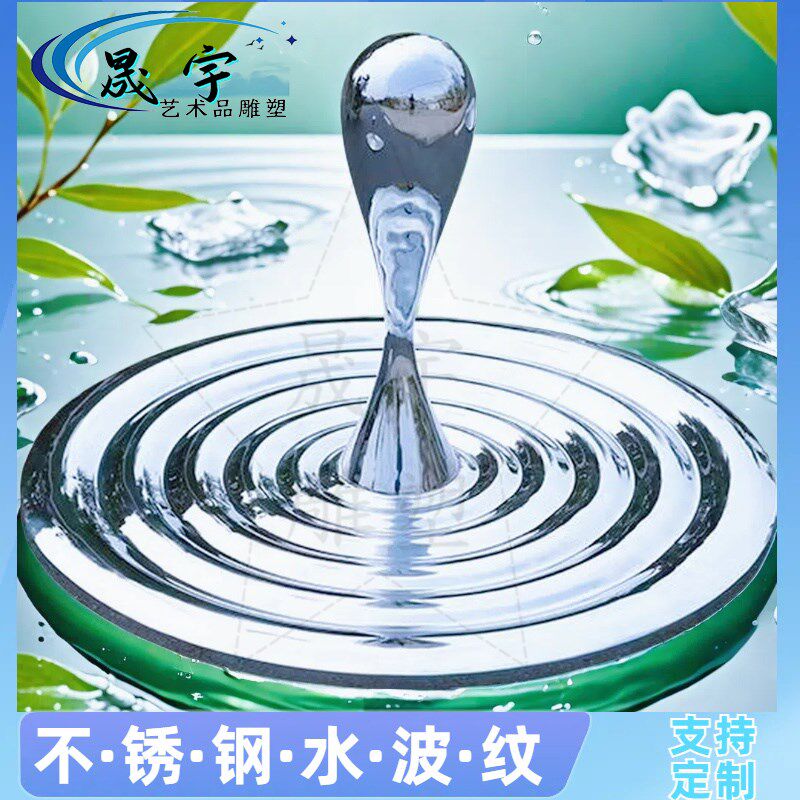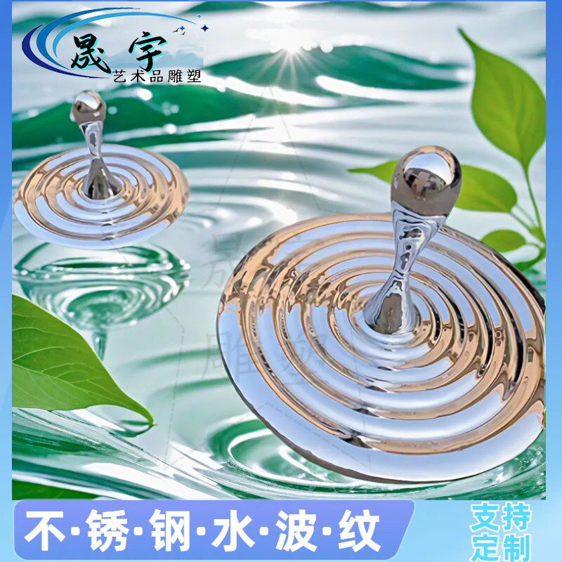 📚 户外轻奢不锈钢水波纹圆盘雕塑酒店会所水池景观涟漪水滴装饰摆件